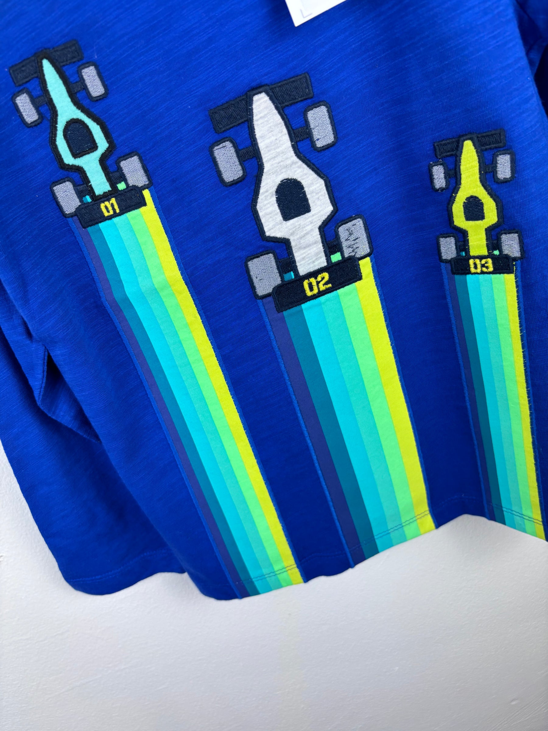 This bright Blue Zoo long sleeve top features a colourful race car design that little ones will love. Made from soft cotton, it’s both comfy and easy to wear for everyday play. The vibrant print adds a pop of colour to any outfit, while the lightweight feel makes it perfect for layering. This preloved piece is great for kids who love cars and racing fun. A second hand gem full of energy and comfort.