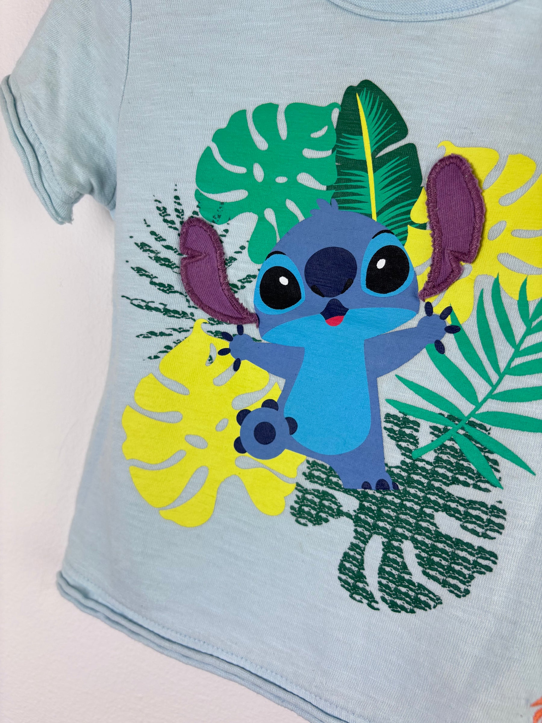 A fun Disney Stitch outfit featuring a soft blue t-shirt with a bold tropical print and a matching quilted jacket. Made from soft cotton and fully lined for comfort, this set brings playful charm to everyday wear. The jacket has easy popper fastenings and striped cuffs for a sporty look. This preloved second hand outfit is in very good condition and ready for more adventures. Perfect for little Stitch fans, it’s a sustainable way to enjoy quality branded children’s clothing.