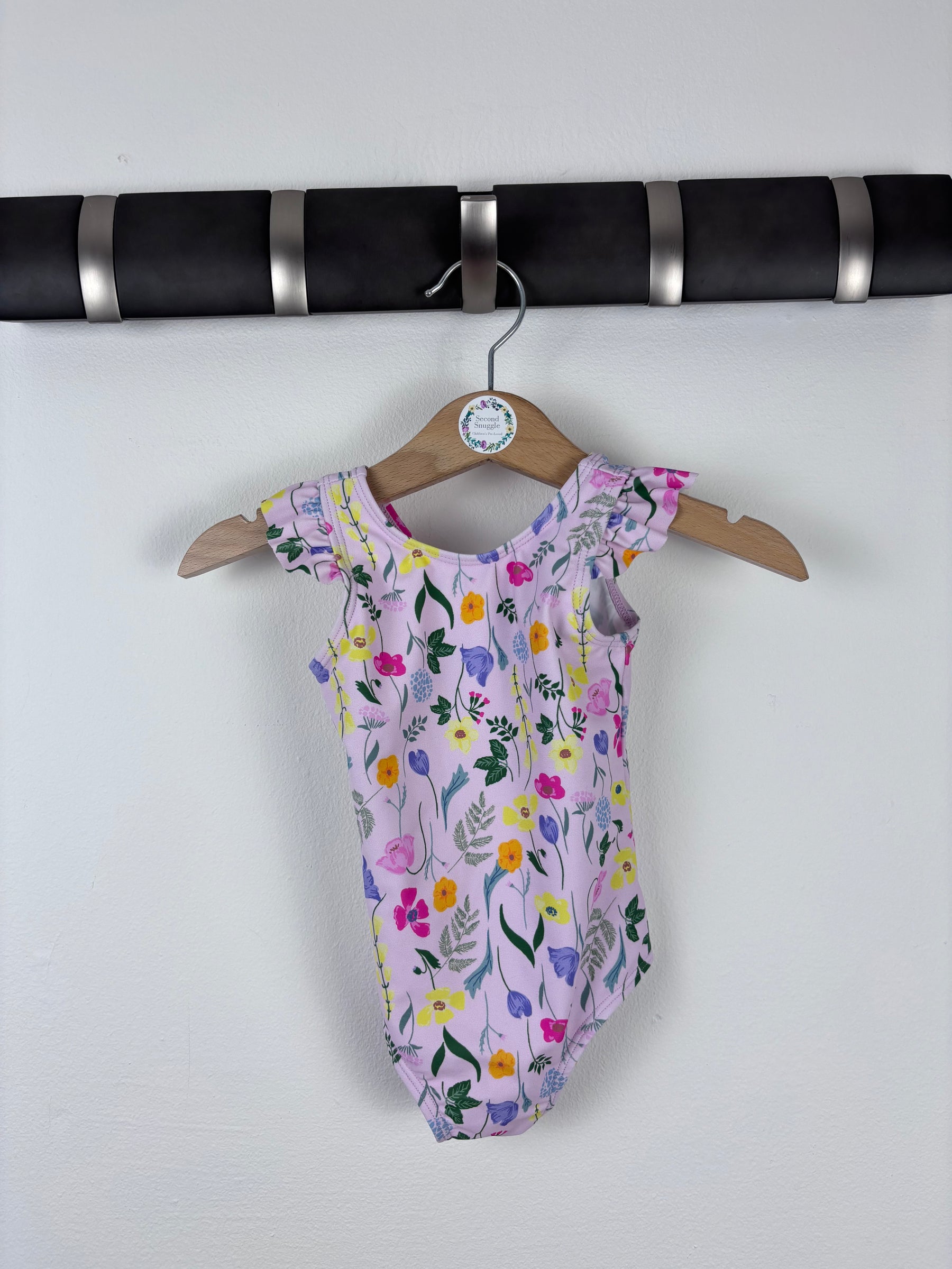 This adorable swimsuit from George is printed with colourful flowers on a soft lilac background. The stretchy fabric ensures comfort while the frill sleeves add a sweet touch. Perfect for swimming lessons or sunny holidays, it’s easy to rinse and quick to dry. This preloved swimsuit is a delightful second hand piece that’s both practical and pretty for baby’s first water adventures.
