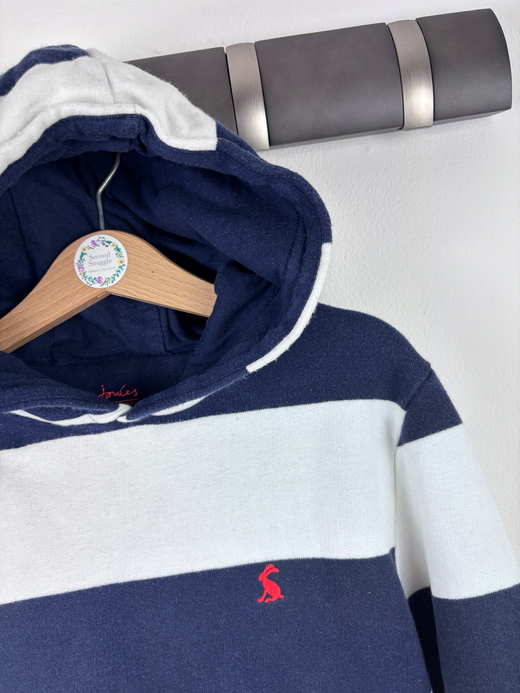 This Joules hoodie in size 10 years is in very good condition. It features wide navy and white stripes with a lined hood and Joules’ signature hare logo on the chest. Made from soft cotton, it’s perfect for keeping warm while playing or lounging. The front pocket adds practicality for busy days on the go. This preloved hoodie is a fantastic second hand choice for children who love quality casual wear. Stylish and durable, it’s a timeless Joules piece made to last.