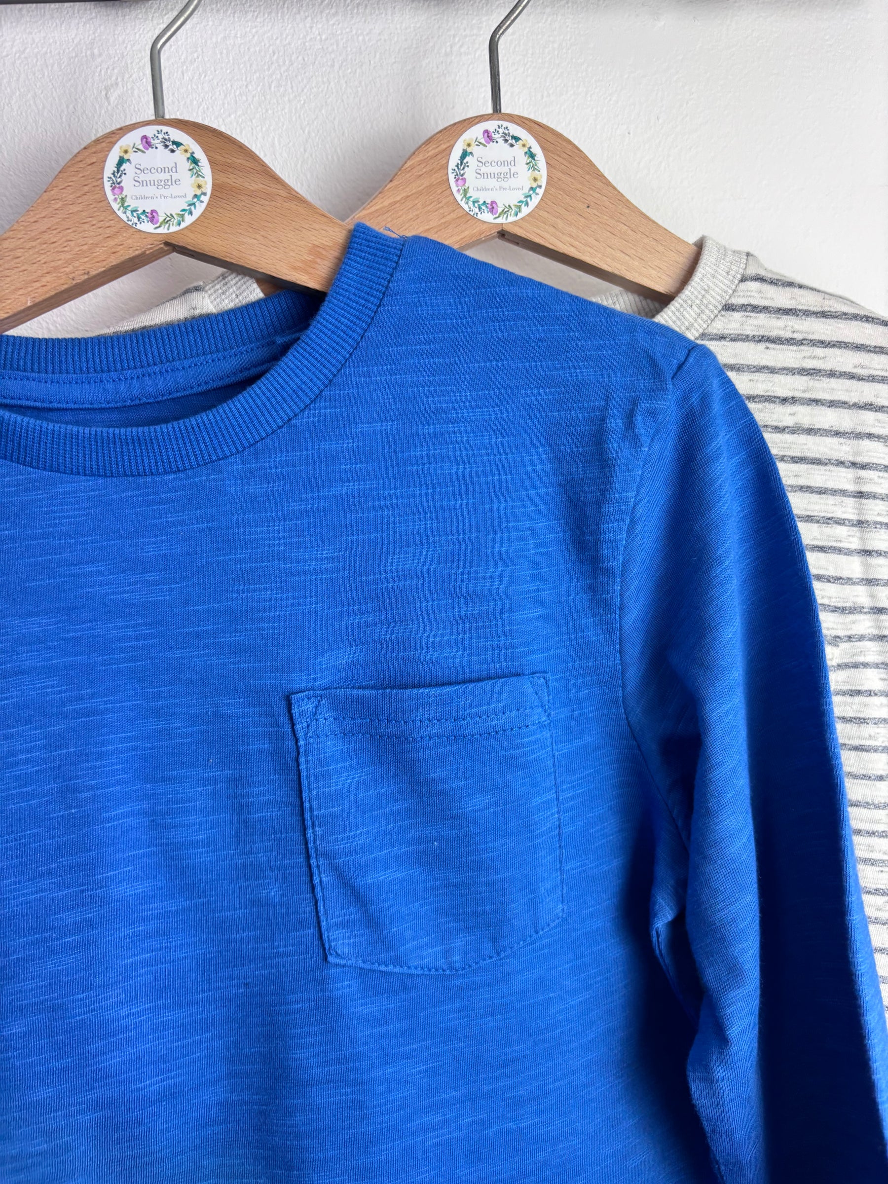 This Next set includes three brand new long sleeve tops in shades of blue and grey stripe. Made from soft cotton, they’re perfect for layering and everyday wear. Each top has a simple round neck and relaxed fit, keeping little ones comfortable all day. These preloved-style tops have never been worn and come as a fresh set ready for play. A lovely second hand bundle that’s new, practical and great value for growing wardrobes.