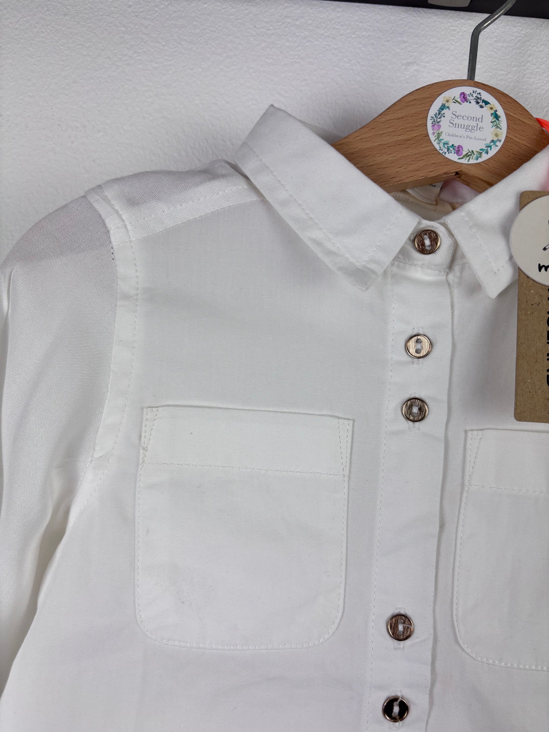 Smart white shirt from River Island’s mini range, brand new with tags. Features button fastening, chest pockets, and a soft cotton finish. A great ex-stock piece for formal occasions or family events, offering quality at a fraction of the original price. This children’s shirt is an ideal addition to any little one’s wardrobe and perfect for creating stylish outfits that still feel comfy to wear.
