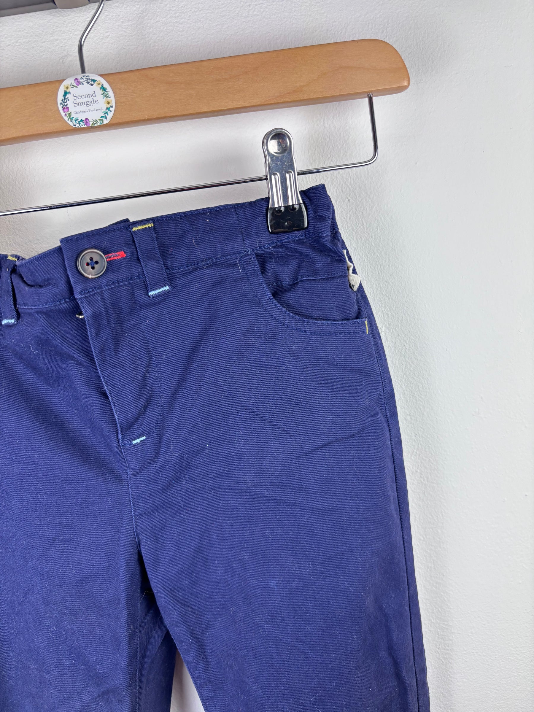 These smart navy chinos from White Stuff are an excellent wardrobe staple for little ones. In excellent condition, they’re made from soft yet sturdy cotton with an adjustable waist for growing comfort. Perfect for everyday wear, family outings, or special occasions, they combine classic style with practicality. White Stuff clothing is known for its quality and longevity, making this preloved pair a brilliant sustainable find. A lovely second hand piece for children’s wardrobes that’s easy to dress up or down throughout the seasons.