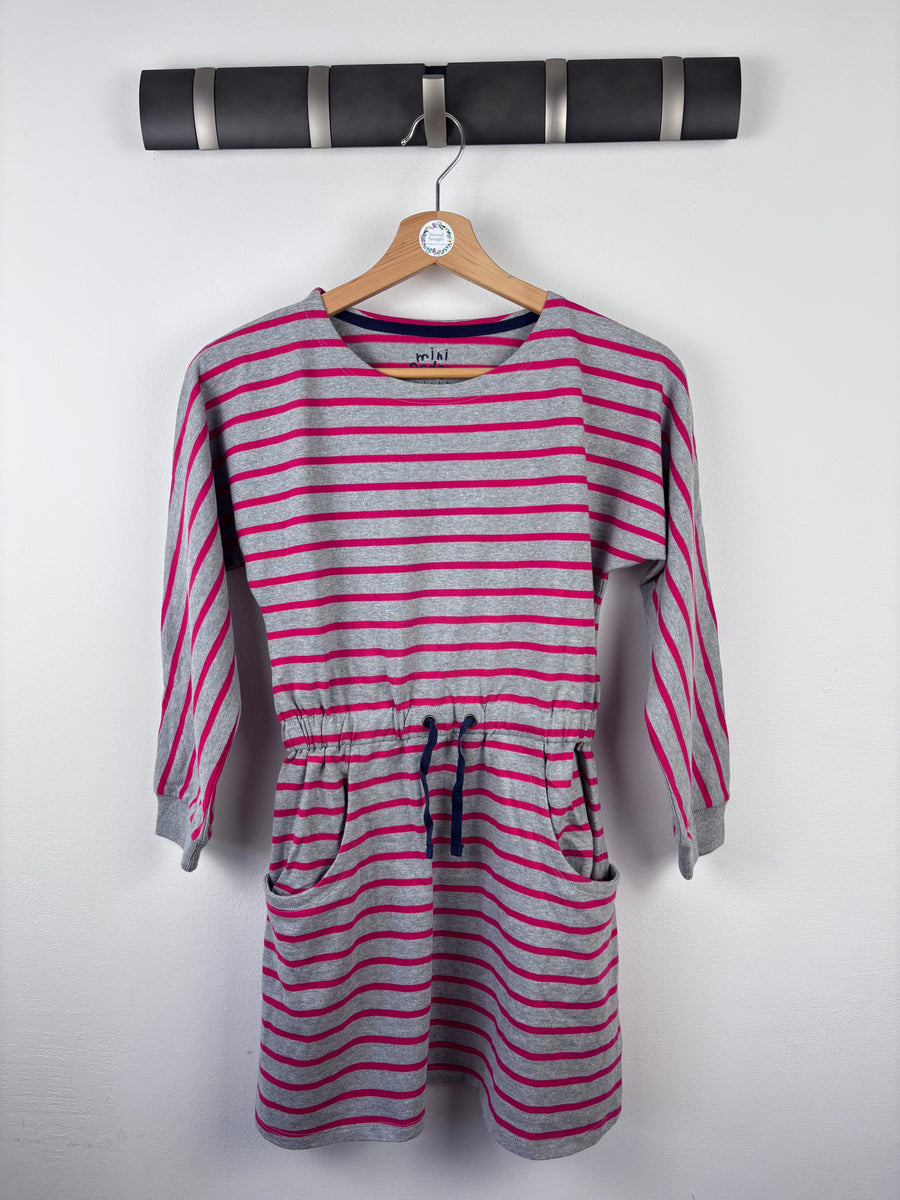 Mini Boden Grey Pink Stripe Dress 9-10 Years