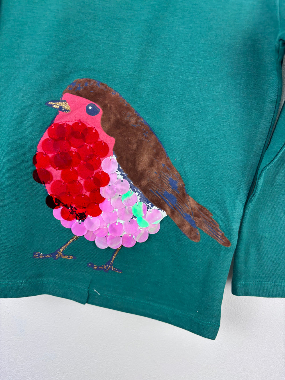 Mini Boden Green Robin Sequin Top 4–5 Years