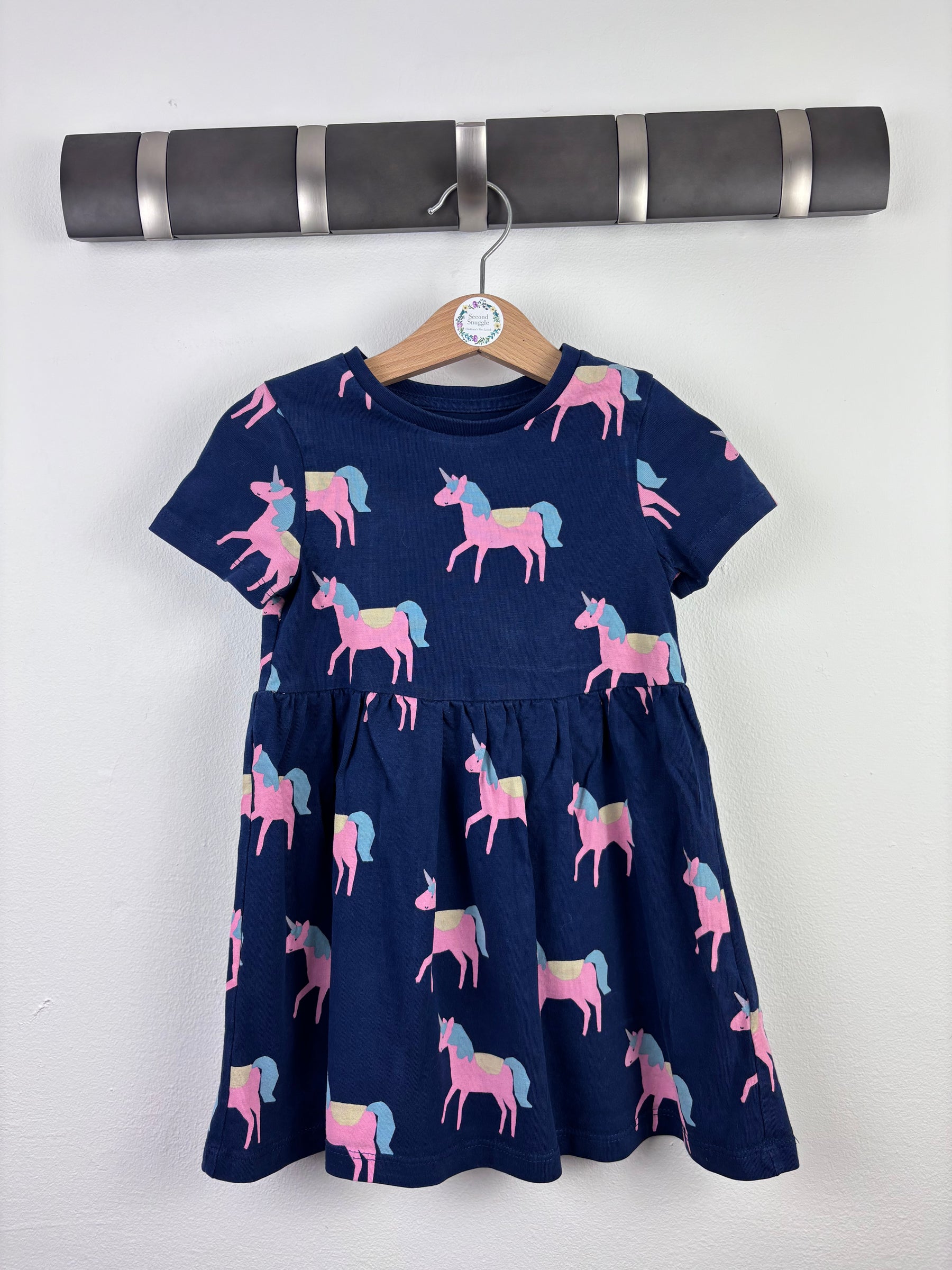This M&S dress is in very good condition and full of playful charm. It features a navy base with colourful unicorns in pink, blue and yellow. The soft cotton fabric and easy pull-on design make it comfy for all-day wear. Perfect for parties or everyday adventures, this preloved piece brings imagination and fun to any outfit. M&S is known for lasting quality, and this second hand dress still looks lovely and ready for more twirls.
