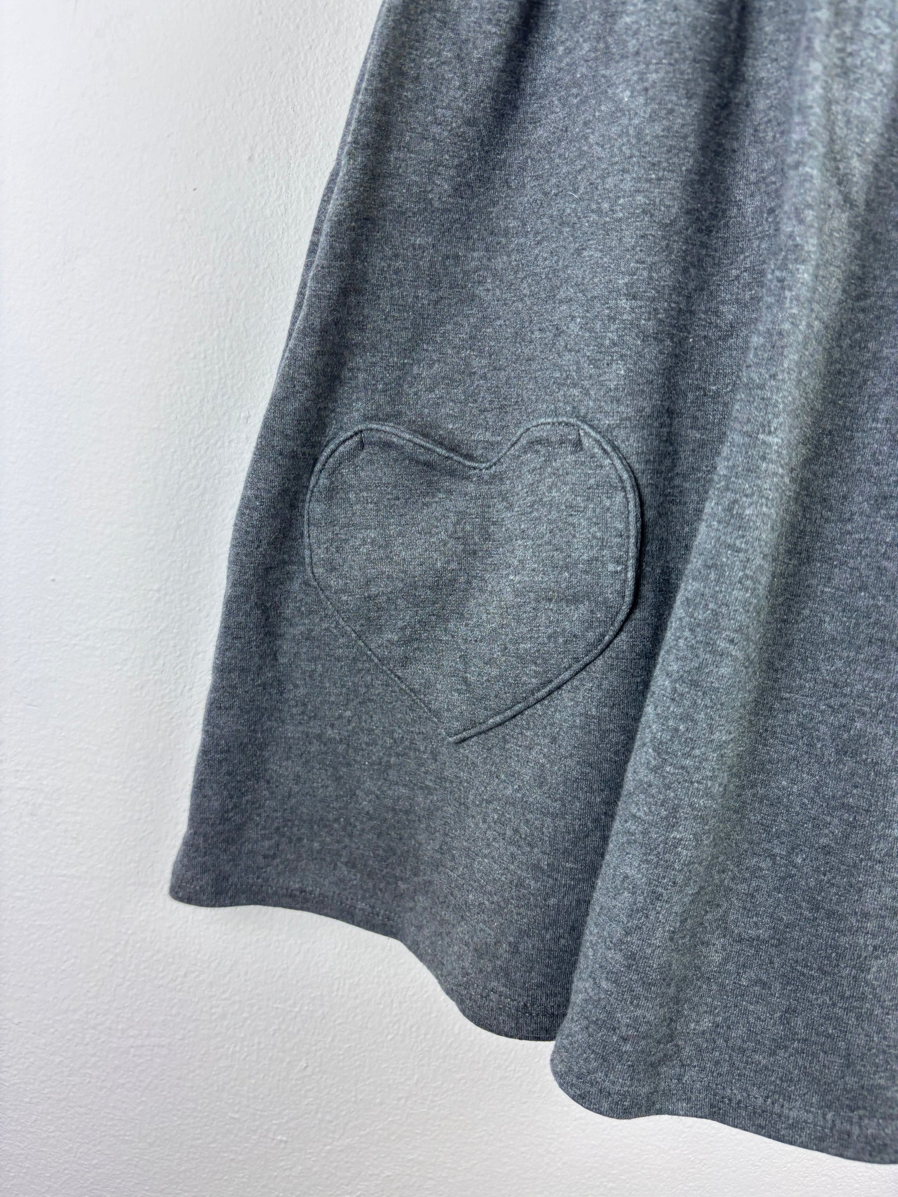 This M&S pinafore dress in size 4-5 years is in very good condition. It is grey with buttoned shoulder straps and two cute heart-shaped pockets at the front. The soft, stretchy fabric makes it comfy for all-day wear and easy to layer over tops or shirts. This preloved piece is a lovely second hand find for school or everyday use. Durable and practical, it’s a simple style that stays smart wash after wash, perfect for children’s clothing that lasts.