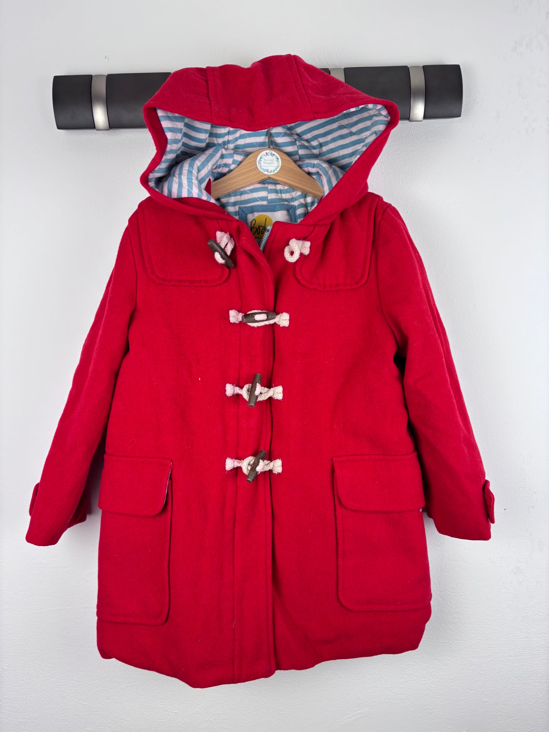 This Boden duffle coat in excellent condition comes in a bold red with a blue striped lining that adds a fun pop of colour. The classic toggles and deep pockets give it a timeless feel and it has been dry cleaned so it is fresh and ready for its next home. This warm second hand coat is perfect for keeping little ones snug. A lovely preloved piece of children’s clothing that works well for school and winter adventures.