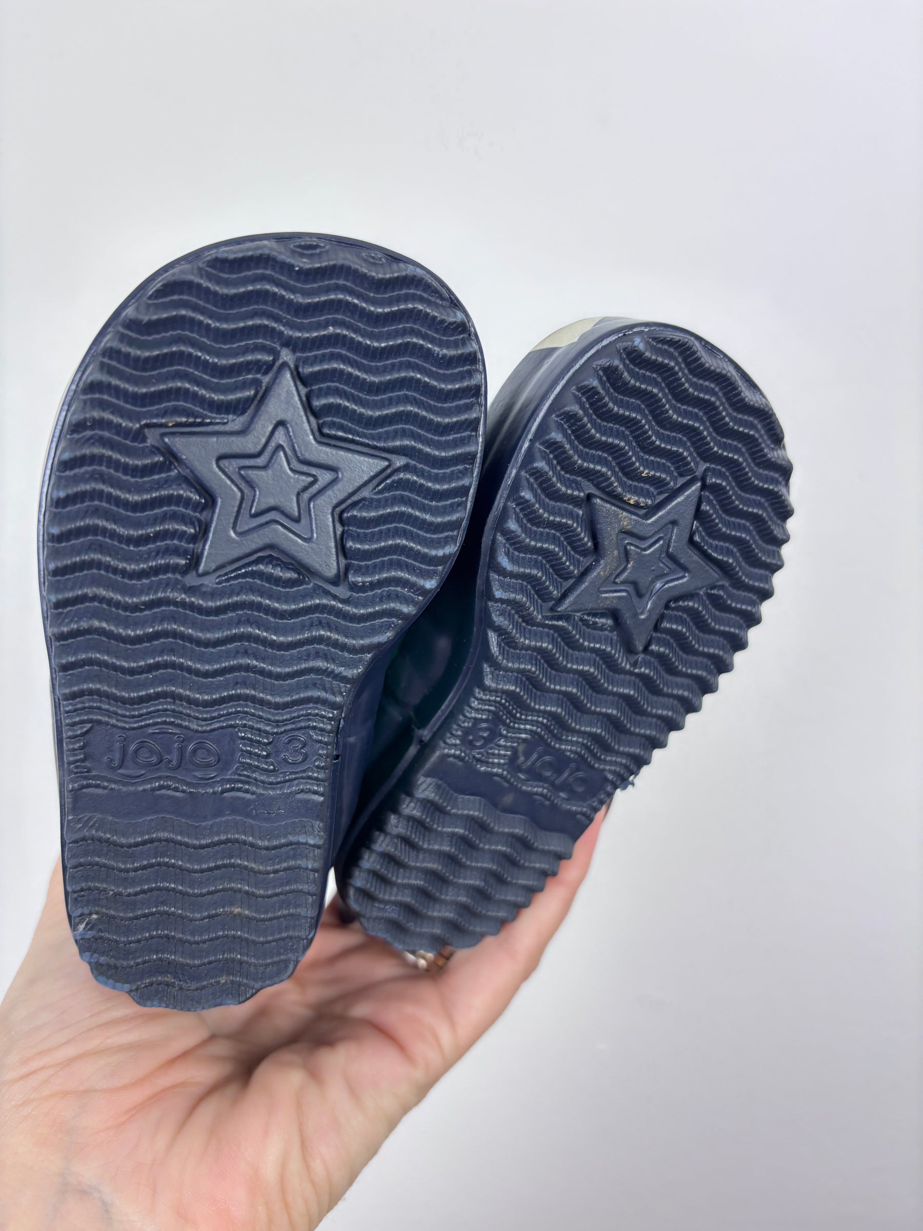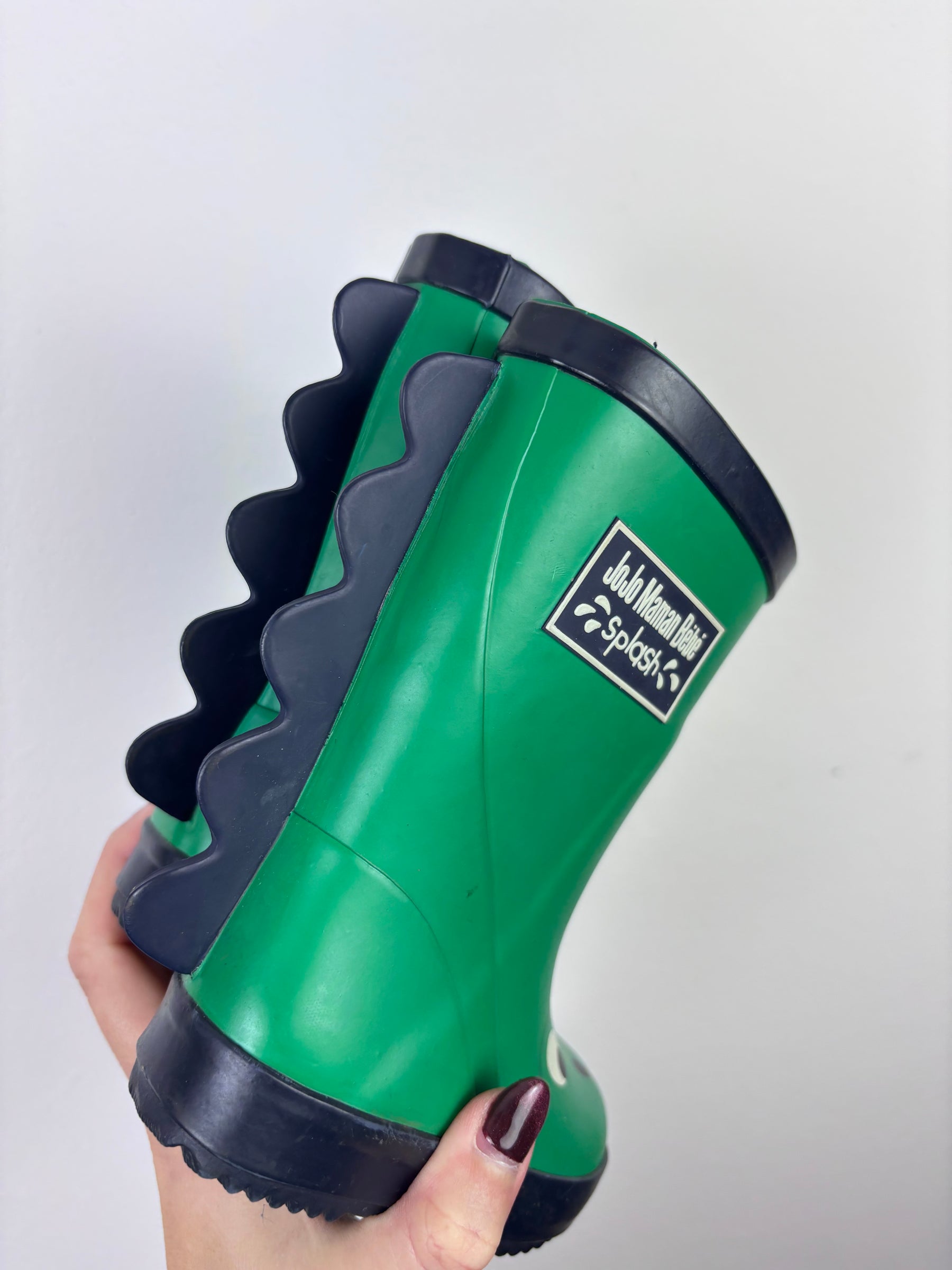 Make rainy-day adventures even more fun with these adorable JoJo Maman Bébé green crocodile wellies. With playful eyes and teeth on the toes and a sturdy grip sole, they’re perfect for puddle-jumping fun. The waterproof rubber keeps little feet dry and comfortable, while the soft lining adds extra warmth. In very good condition, these preloved wellies are a brilliant second hand pair for any little explorer who loves splashing about.
