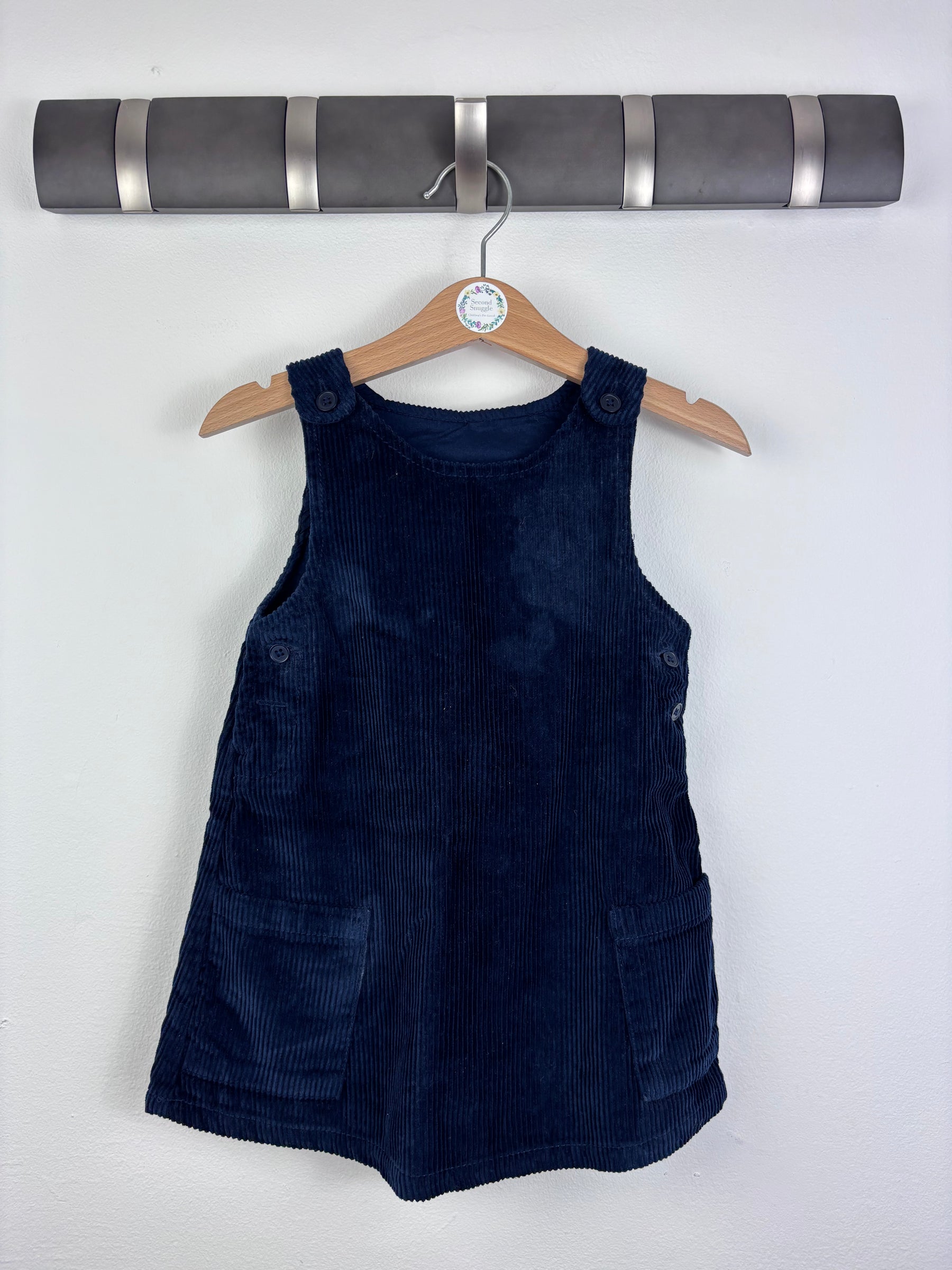 This Next dress is made from soft navy corduroy and has button straps at the shoulders for easy dressing. It features two front pockets for a sweet detail and is perfect for layering with tops or tights. The fabric is soft but sturdy, making it great for play and outings. Condition is good with some light wear but plenty of life left. This second hand baby dress shows how preloved clothes can be both practical and stylish in children’s fashion.