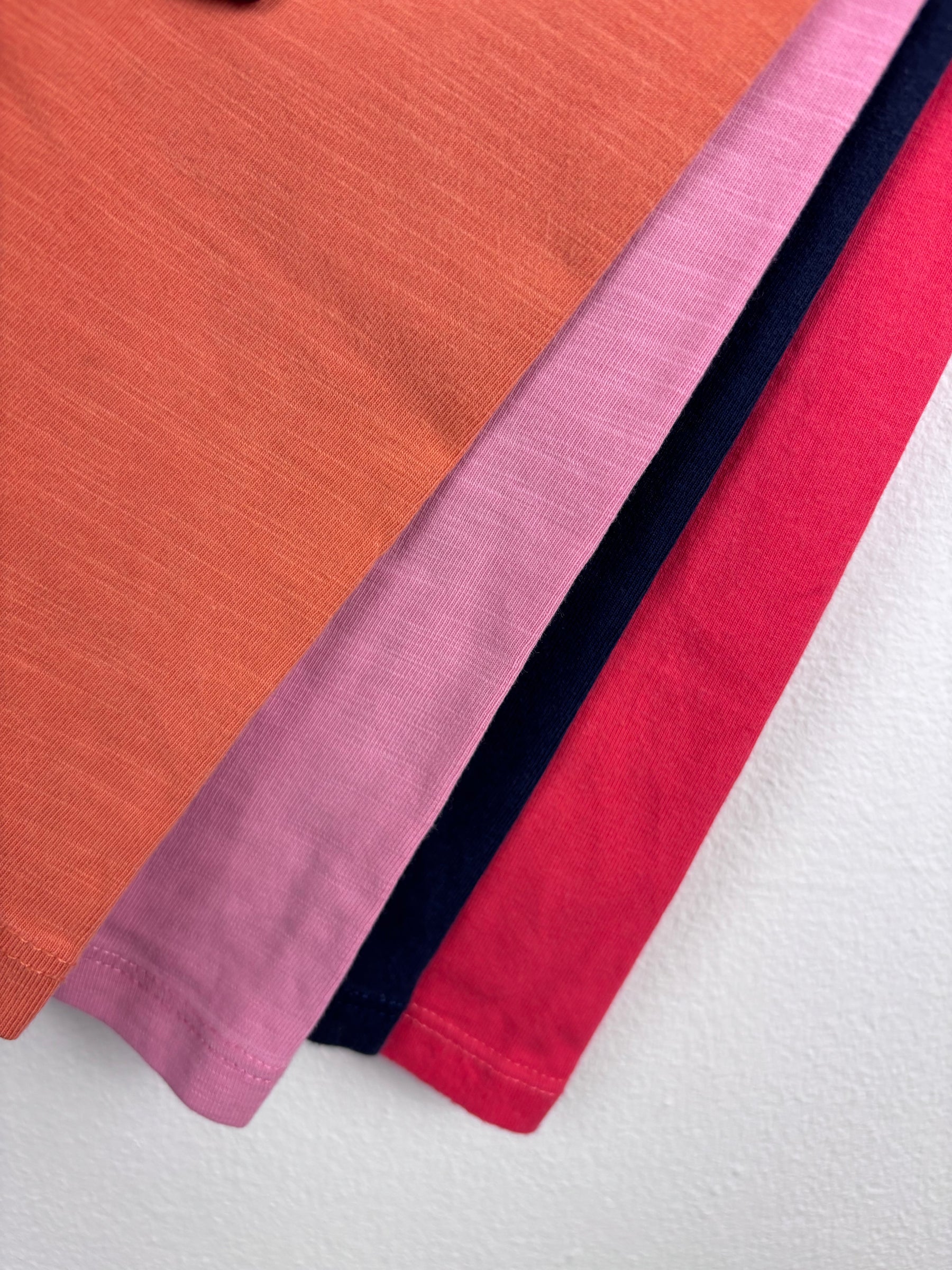 This pack of Fred & Flo leggings includes four pairs in cheerful colours — orange, pink, red, and navy. Made from soft cotton with stretch for comfort, they’re perfect for mixing and matching with tops and tunics. Ideal for everyday wear, playtime, or nursery. These preloved leggings are practical and comfy for active little ones. A great second hand bundle that’s colourful, versatile, and great value.