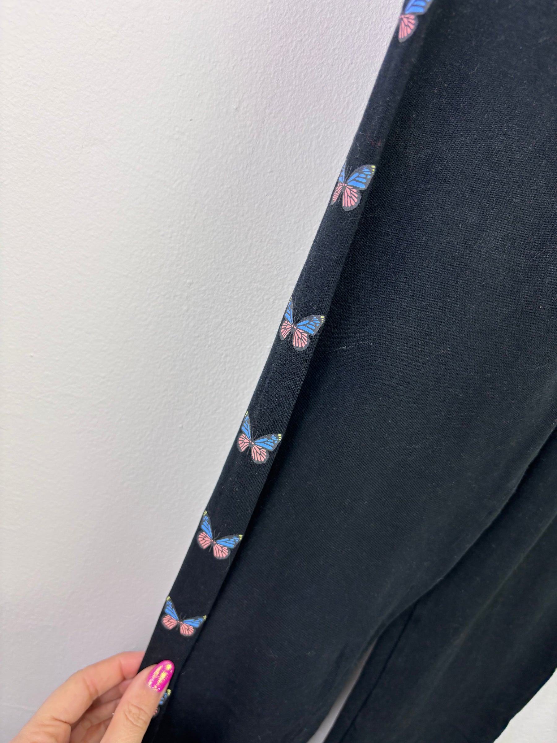 These Marks and Spencer black leggings are a classic wardrobe staple, ideal for everyday wear. They feature a simple pull-on design with an elasticated waistband for comfort and ease. The fabric is soft and stretchy, allowing for movement throughout the day. Suitable for school, sports activities, or casual outfits when paired with longer tops or hoodies. They are in good condition with light signs of wear from normal use. A practical and versatile item that works well in any child’s clothing collection, including second-hand and preloved ranges.