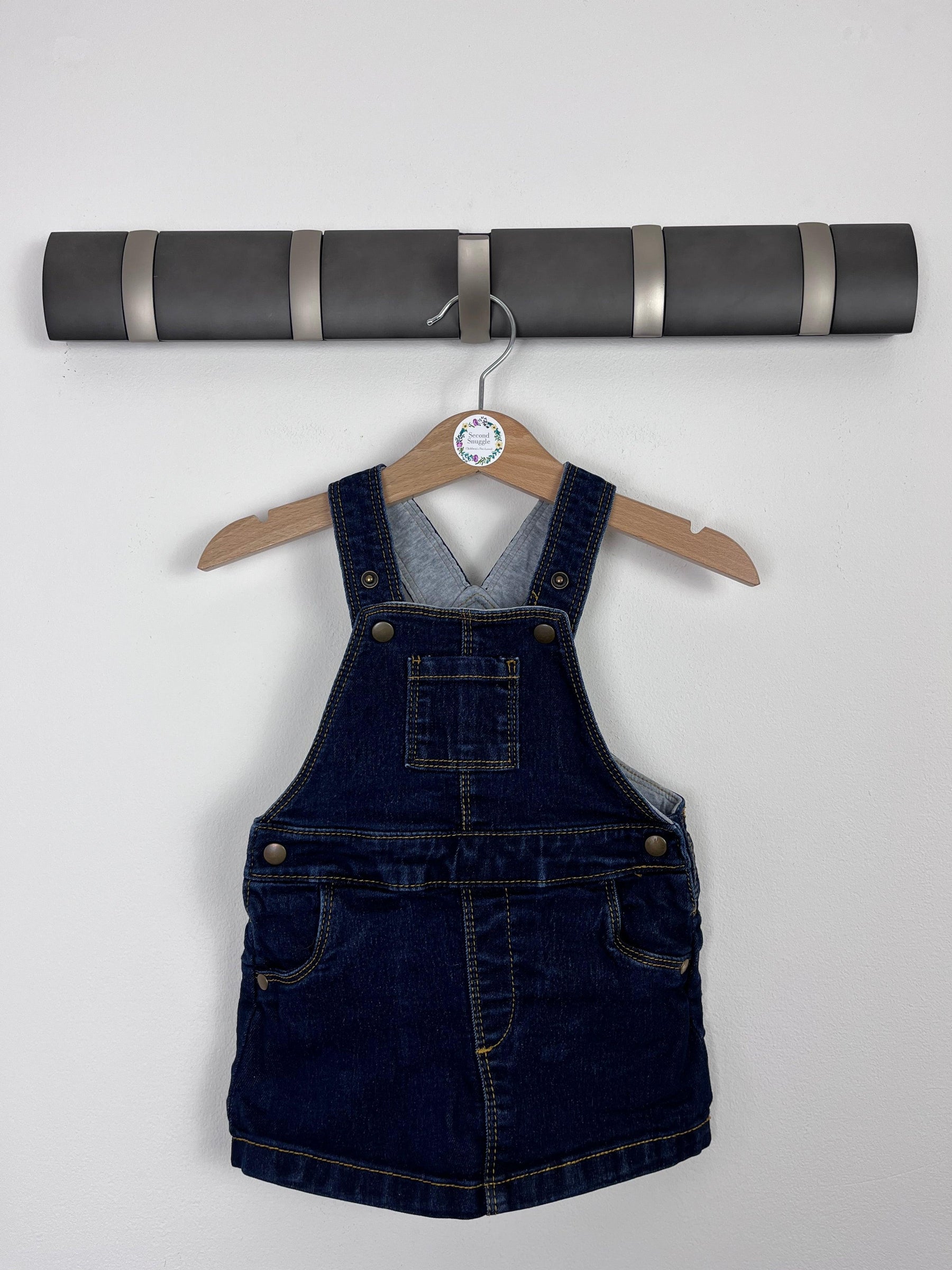 A classic M&S dungaree dress in very good condition, sized 3-6 months. Made in soft blue denim, this pinafore style features button fastenings at the straps and sides, along with pockets on the front. A versatile piece, it can be layered over tops or bodysuits for a variety of looks throughout the seasons. Durable and comfortable, this dungaree dress is made for everyday wear while still looking stylish. This preloved find is a lovely second hand choice for baby girls’ wardrobes and a great sustainable clothing option.