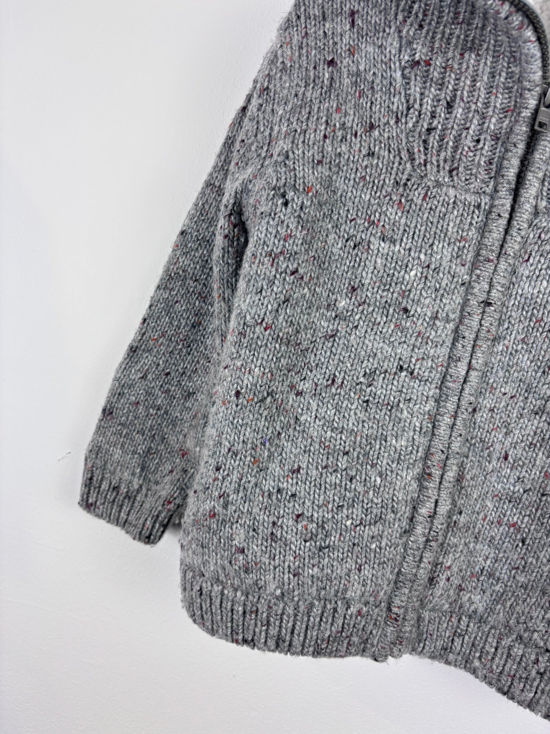 This M&S cardigan in size 5-6 years is in very good condition. It’s a chunky grey knit with a zip front and soft fleece lining for warmth. Perfect for layering during colder months, it’s comfortable and durable for everyday wear. This preloved piece is a lovely second hand find combining quality and practicality. Ideal for school days or weekends, it keeps children cosy while offering a classic look that pairs easily with jeans, trousers or dresses.