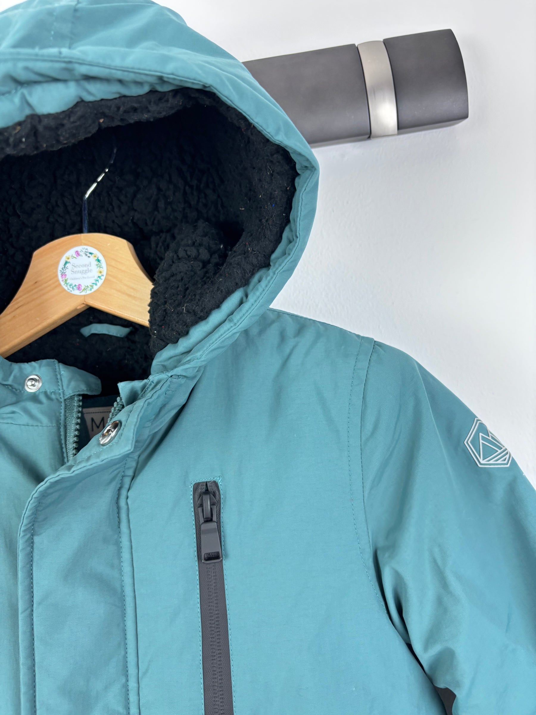 This M&S winter coat is in very good condition and is a practical choice for colder days. It has a smooth blue outer, a cosy hood, and secure zip and popper fastenings to help keep little ones warm when they're out and about. The front pockets are handy for small essentials, and the simple design makes it ideal for school or everyday wear. This second hand coat offers good quality and comfort, and M&S pieces are made to last. A reliable preloved layer for children who need something warm and easy for winter adventures.