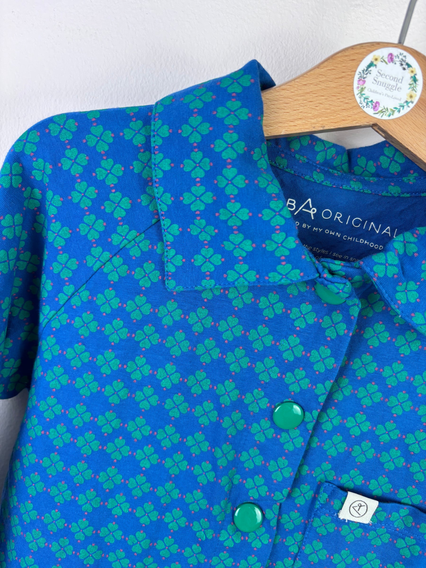 This Alba shirt features a vibrant blue base with an all-over green geometric print and a smart collared neckline. Designed with long sleeves and a full button front with matching green buttons, it’s easy to wear open as a lightweight overshirt or buttoned up for a neater look. The soft cotton fabric feels comfortable and breathable, making it ideal for everyday wear, layering and seasonal transitions. In excellent preloved condition with minimal signs of wear. A standout, playful piece that adds colour and style to a sustainable wardrobe.