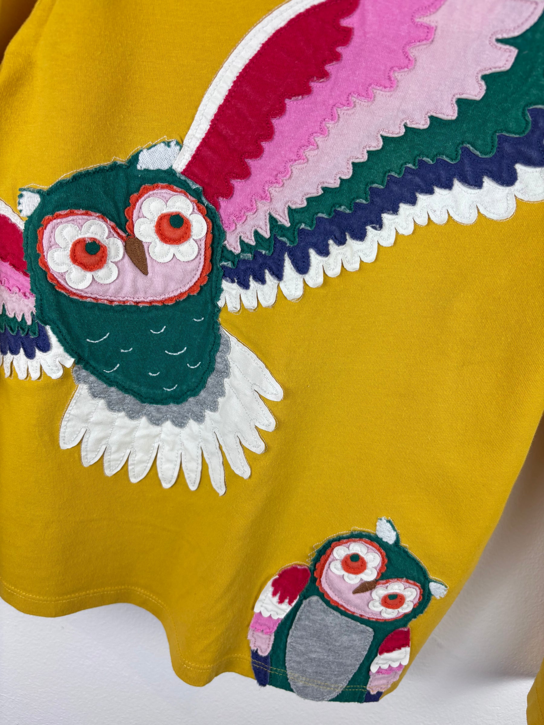 Boden Mustard Owl Top 7-8 Years PLAY