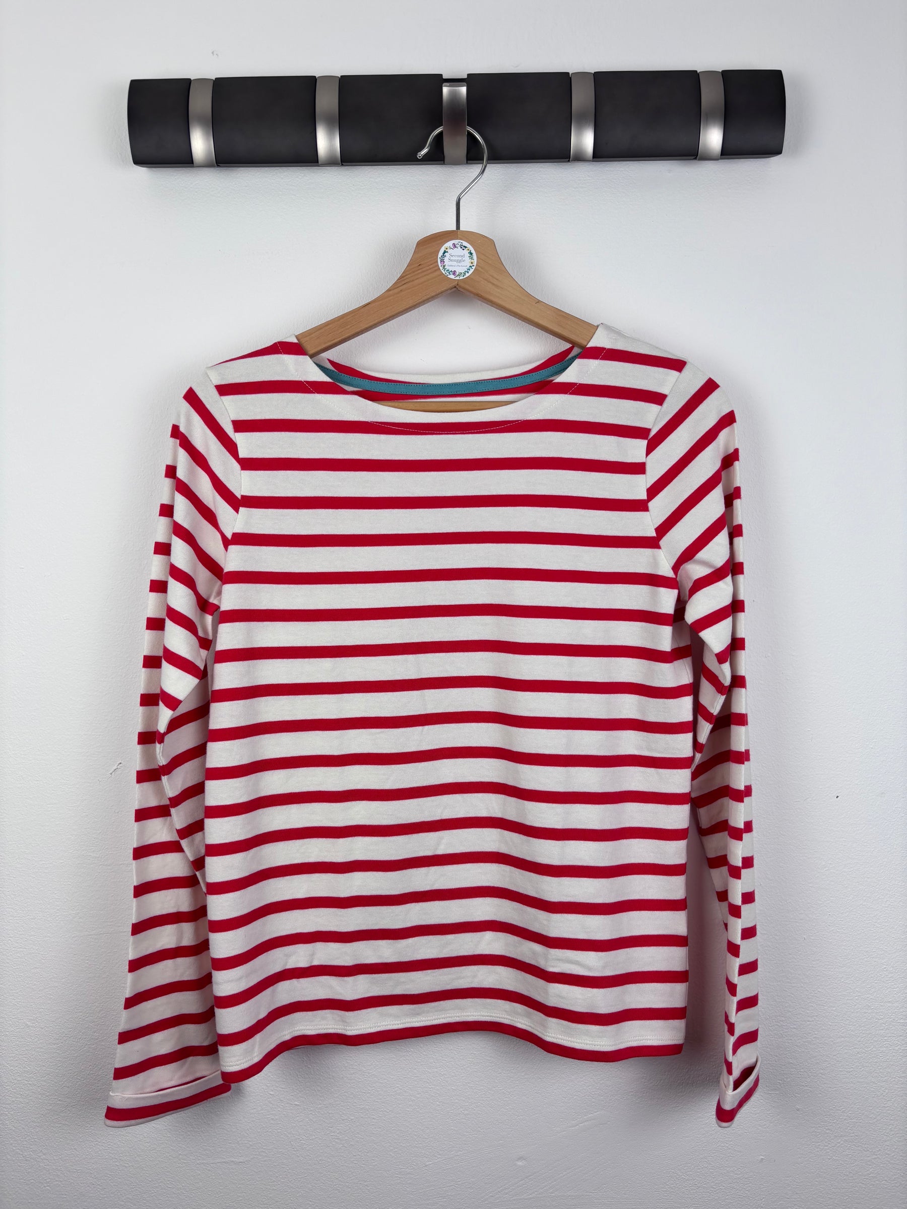 This Boden long sleeve top is new without tags and made from soft, breathable cotton. It features classic red and white stripes with a simple round neckline and long sleeves for easy everyday wear. The fabric feels comfortable against the skin and is ideal for school, weekends, or layering under jumpers. The fit is relaxed and easy to move in. This second hand top has not been worn and remains in excellent condition. It is a preloved children’s clothing item that brings a timeless style to any wardrobe.