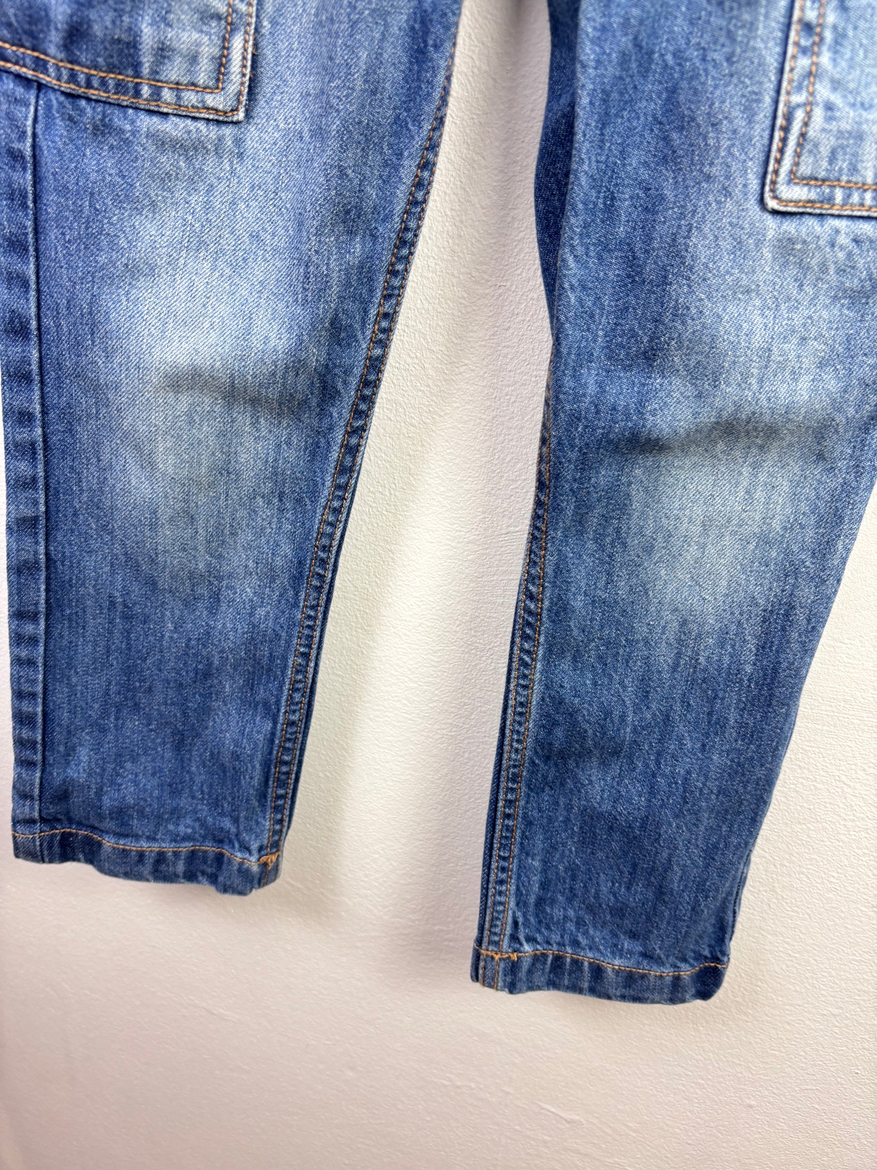These Fat Face dungarees come in a classic mid-blue denim with adjustable shoulder straps and traditional metal fastenings. The bib front features a central chest pocket with subtle striped trim detail, complemented by practical front and side pockets. The straight leg design offers a comfortable and durable fit suitable for everyday wear. In very good preloved condition with light natural fading only. A versatile layering piece perfect for casual styling throughout the seasons.