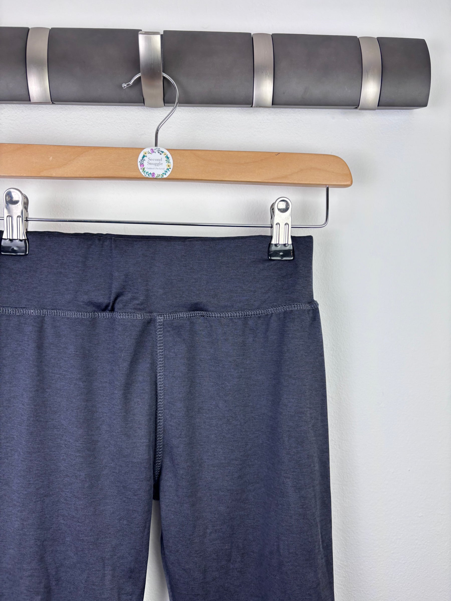 These John Lewis sports leggings are black with blue panel details on the legs, giving them a sporty and modern look. They feature a stretchy waistband that offers comfort and a secure fit during movement. The fabric feels smooth and flexible, making them ideal for PE, sports clubs, or active days. The length is full and provides good coverage. These leggings are in very good condition with minimal wear. A practical item for kids fashion and a strong choice for children’s clothing collections including second-hand and preloved activewear.