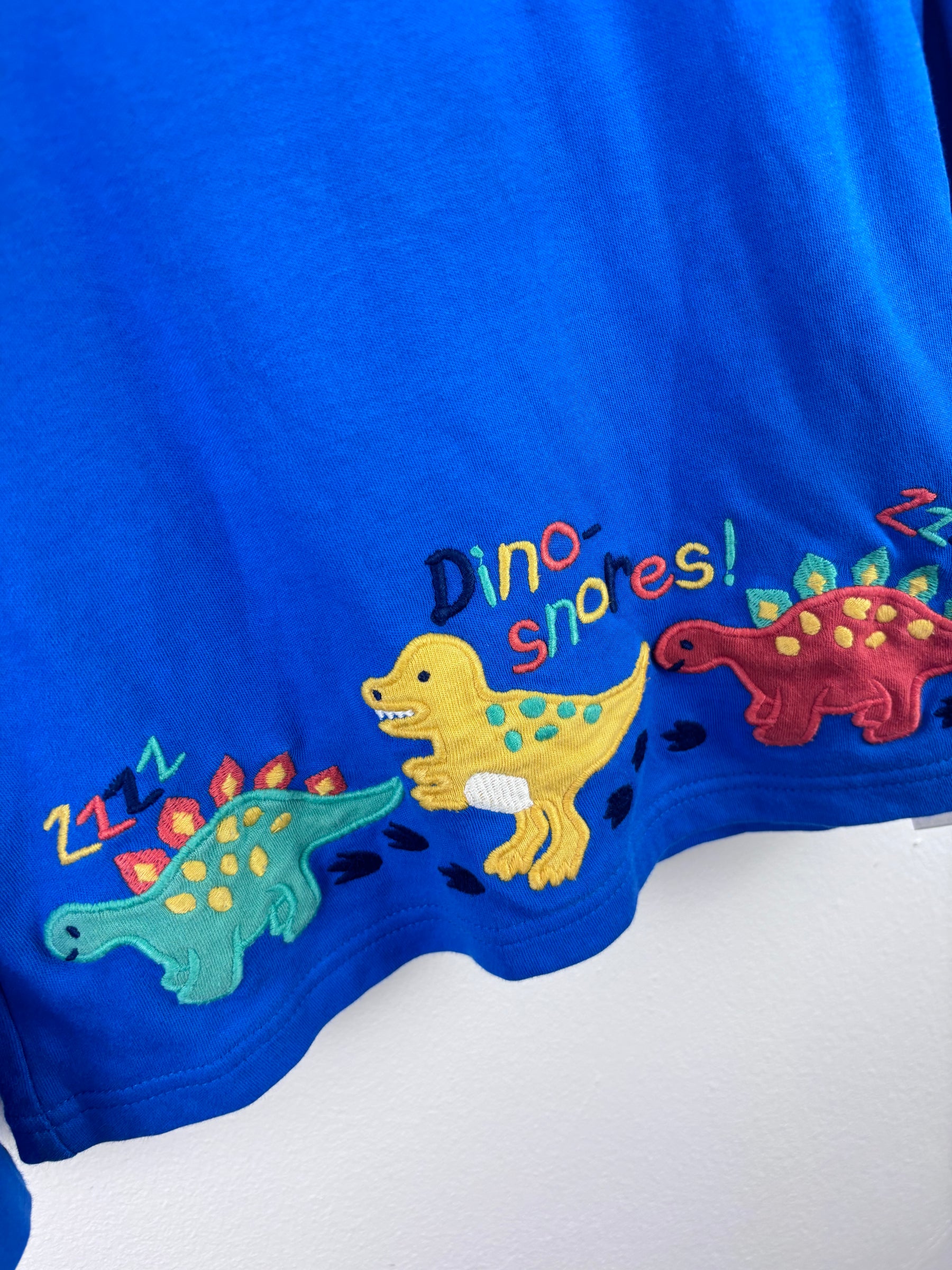 Fun and comfortable long sleeve top from JoJo Maman Bébé, featuring a bright blue colour with playful dinosaur print detail along the hem. Made from soft cotton fabric, it’s perfect for everyday wear, whether for school, playtime or layering in cooler weather. The classic crew neck and relaxed fit make it easy to wear and style with jeans or joggers. In good condition with general signs of wear consistent with use. A great practical piece for any little dinosaur fan’s wardrobe.