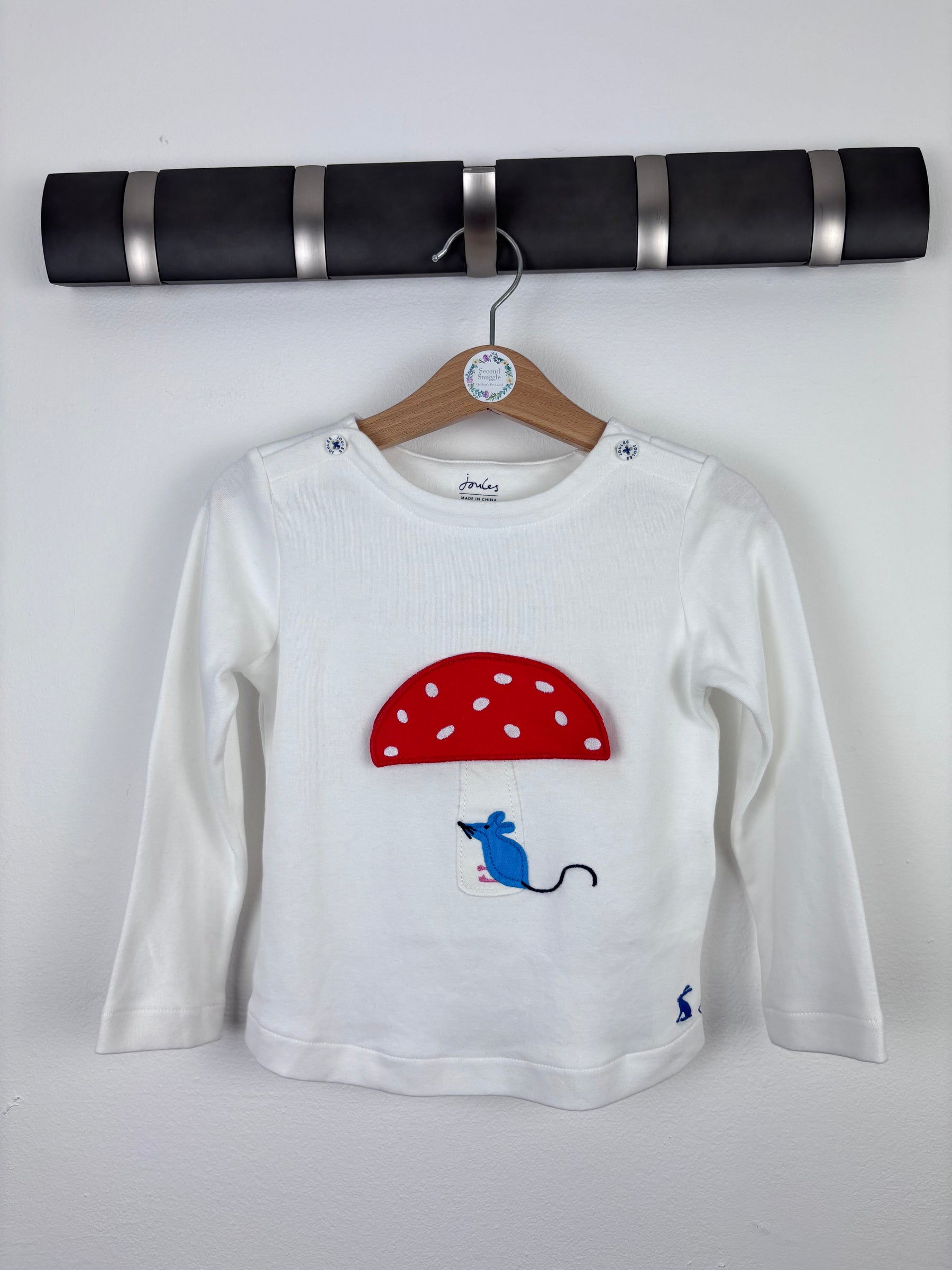 Joules White Mouse and Toadstool Top 18–24 Months
