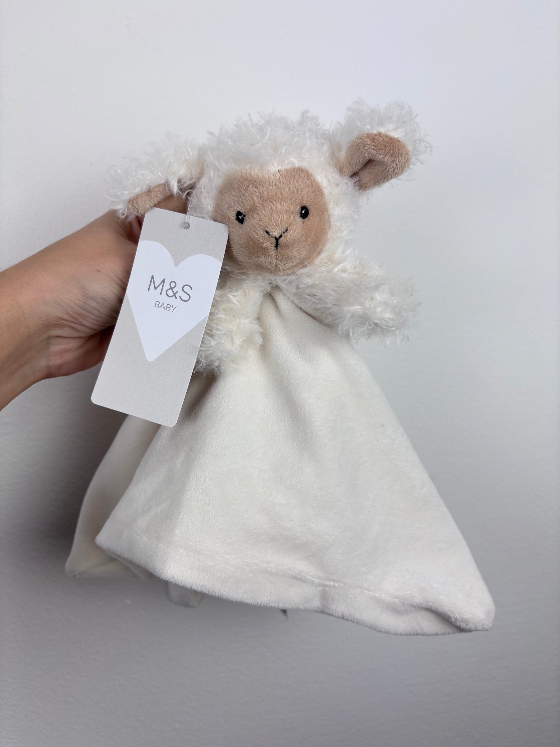 This M&S Baby comforter features an adorable lamb soft toy holding a super-snuggly cream blanket. The plush fabric is kind to delicate skin and easy for babies to grasp. Perfect as a newborn gift or a bedtime companion. Brand new with tags attached, it’s a lovely keepsake that brings comfort and charm. This new piece fits perfectly alongside our preloved baby range for thoughtful, long-lasting gifting.
