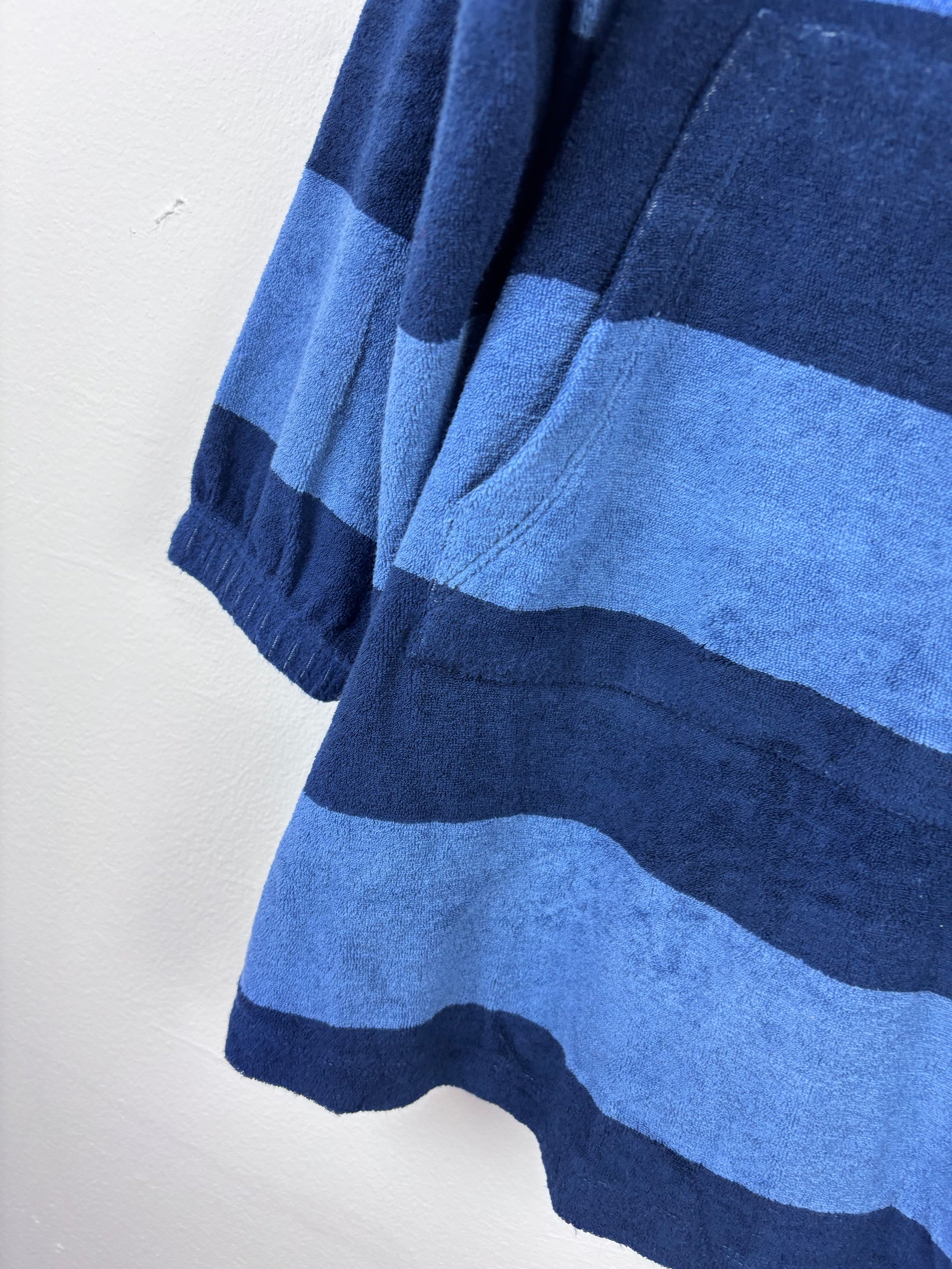 This M&S towelling hoodie is in excellent condition and has bold blue stripes and a warm textured feel. It is perfect for beach days, swimming lessons or cosy wear at home. The hood and pocket make it extra practical. This second hand hoodie is great for kids who enjoy active days out and comfortable clothing. It fits nicely into any children’s wardrobe and is easy to throw on. This preloved item is in lovely shape and ideal for simple kids’ fashion choices.