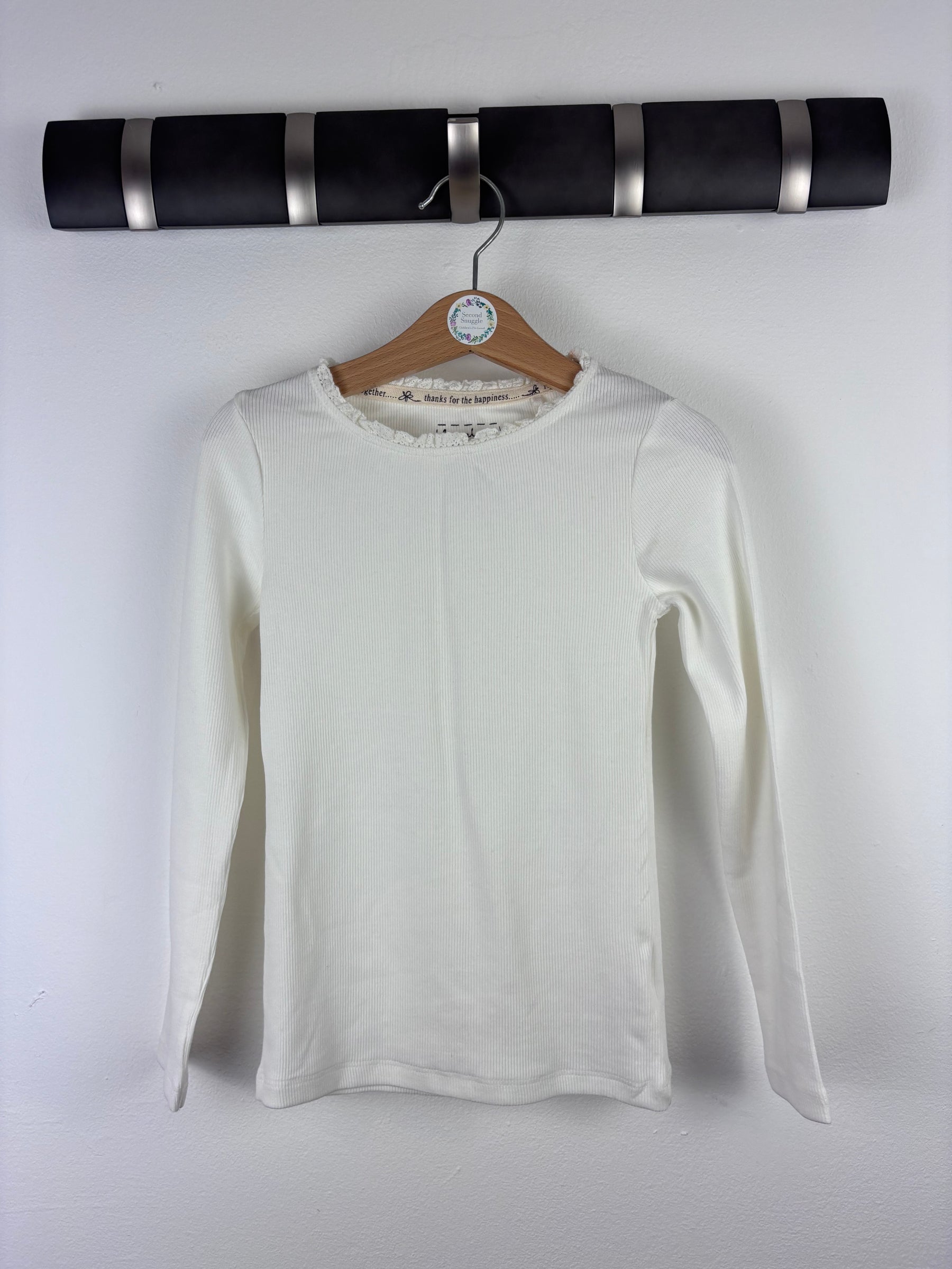 This cream ribbed top from Next is available in a range of sizes and in lovely condition. Featuring subtle frill trim detailing at the neck, it’s made from soft cotton for all-day comfort. Perfect for layering under dresses, dungarees, or jumpers. This preloved top is a timeless second hand piece that’s both simple and stylish, ideal for mixing into your child’s everyday wardrobe while choosing sustainable fashion.