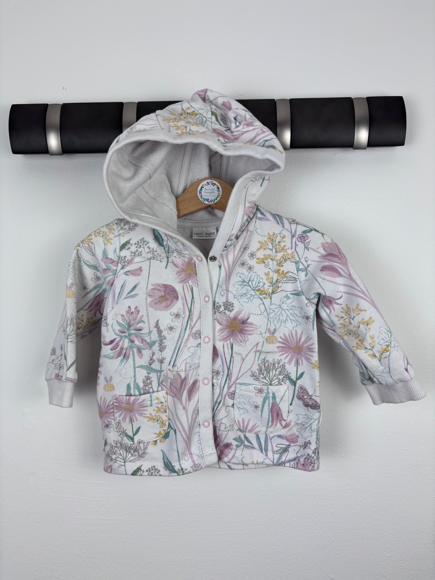 This soft cotton jacket from Next Baby features a delicate floral and nature print in pastel shades. With a cosy hood, popper front, and two small pockets, it’s perfect for layering in cooler weather. The gentle lining keeps little ones snug and comfortable. In good condition, with a few light marks as shown, this preloved jacket is a lovely second hand find for baby wardrobes, offering both warmth and style in one charming piece.