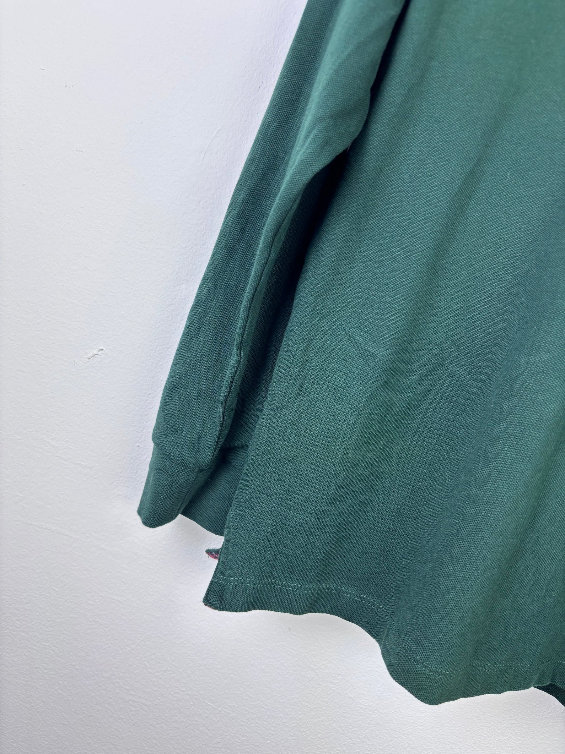 This Next long sleeve polo top comes in a rich green shade with a contrasting checked inner collar detail. Featuring a buttoned neckline and soft cotton fabric, it is suitable for smart-casual wear. In excellent preloved condition with no visible signs of wear. Ideal for school, family outings or everyday wear, this top pairs well with jeans or trousers and offers a polished look for a second-hand children’s wardrobe.