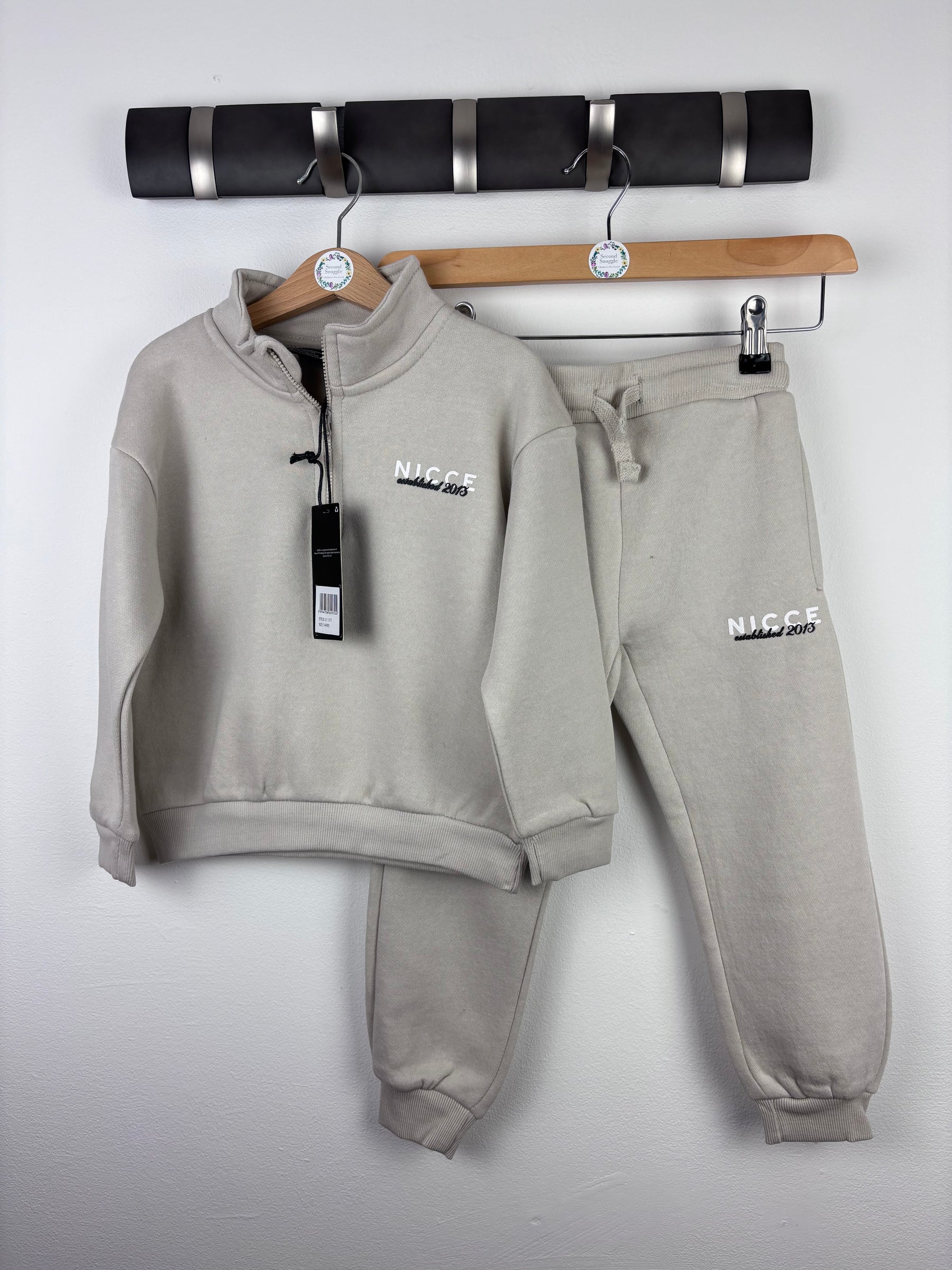This Nicce set is new and includes a stone quarter-zip sweatshirt with matching joggers. The top has a simple embroidered logo and a soft, cosy feel. The joggers are easy to wear with an adjustable waist and cuffed ankles. This set is unworn and gives the look of a premium tracksuit without the usual price tag. It is great for after school, weekends or relaxing at home. This preloved set is stylish and practical, offering comfort and durability for everyday use. This set retails at around £99!
