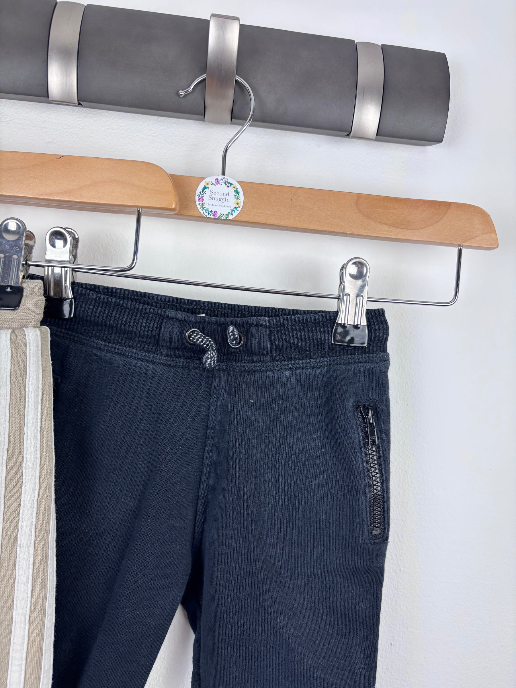 This comfy two-pack of joggers includes a beige Adidas pair with the classic white side stripes and logo, plus navy joggers from River Island. Both are made from soft cotton with elasticated waistbands and cuffed hems for a snug fit. Perfect for crawling, playing, or napping, they’re easy to mix and match with everyday tops. These preloved joggers have plenty of life left in them, making them a brilliant second hand choice for little ones who love comfort and freedom to move. Stylish, practical, and cosy for any busy baby’s wardrobe.