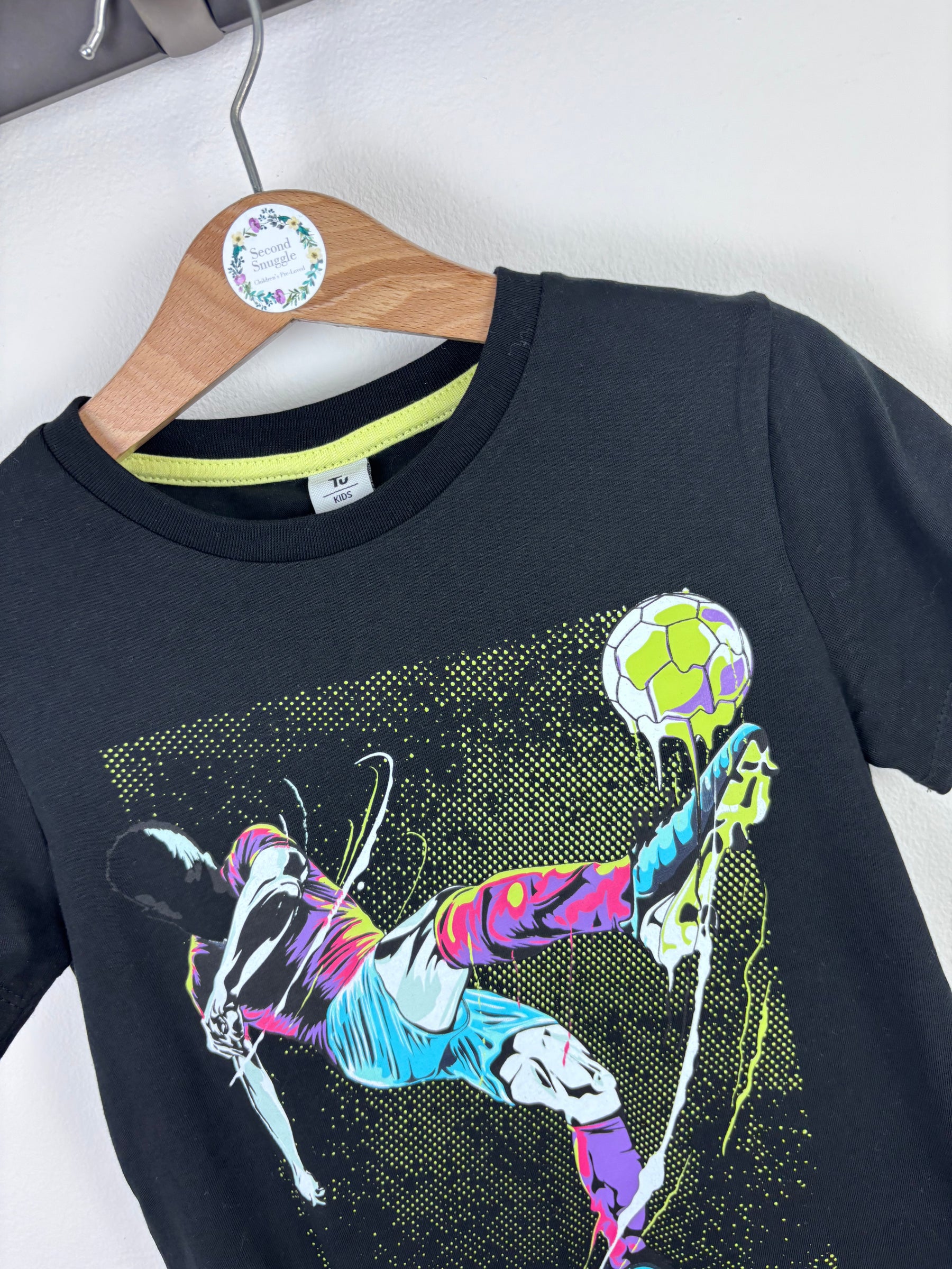 This Tu short-sleeved T-shirt features a bold football print in bright colours against a black background. Made from soft cotton, it’s lightweight and breathable, perfect for playdays or sports-loving kids. The colourful design adds a fun touch, pairing easily with joggers or jeans. In very good condition, this preloved T-shirt is a cool second hand find that’s ideal for everyday wear, offering comfort, quality and a sporty look children will love.
