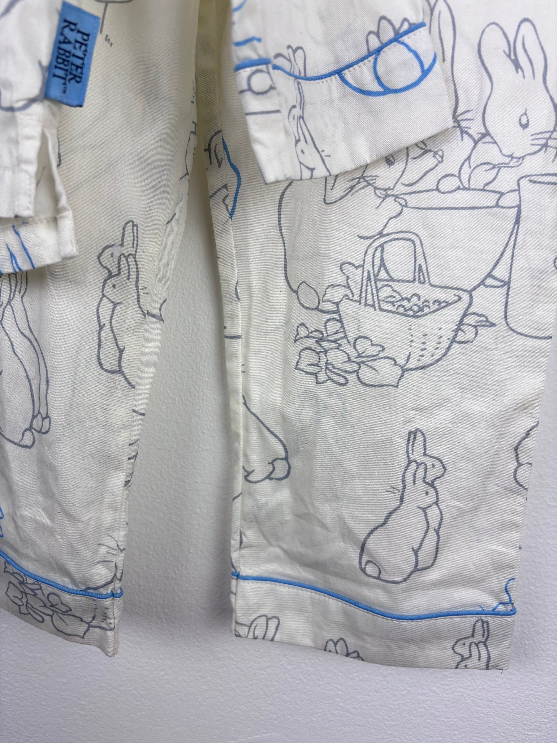 This pyjama set from M&S includes a button front top and matching bottoms with a soft rabbit print throughout. The piping detail adds a neat finish, and the fabric feels smooth and lightweight. The waistband sits comfortably without being tight. The set is in excellent condition with no signs of wear. This is a second hand item that looks barely worn. A gentle preloved option for kids, combining comfort and quality while choosing a more sustainable approach to children’s fashion.