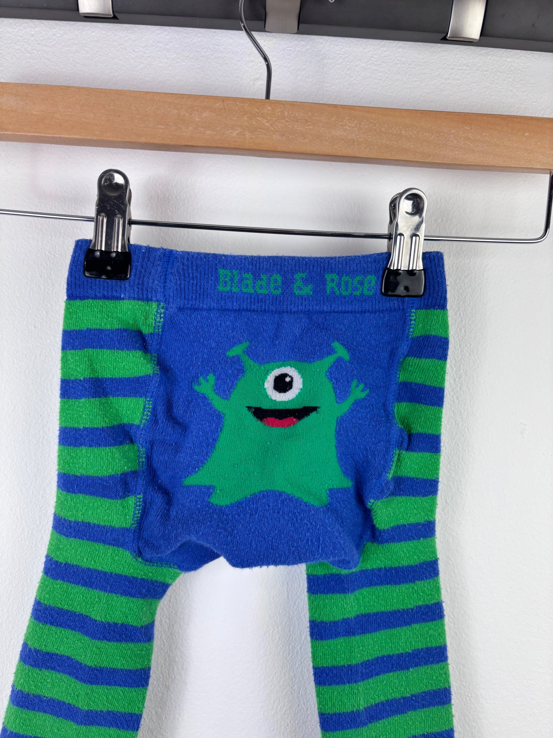 These playful Blade & Rose leggings feature bright blue and green stripes in a soft, stretchy knit. Designed for wriggly babies and first steps, they offer comfort and flexibility. In good condition, they still have plenty of wear left. A great second hand find from a much-loved brand known for its fun designs. Perfect for mixing with tops or dresses, they bring a sustainable touch to baby fashion that’s both practical and colourful.