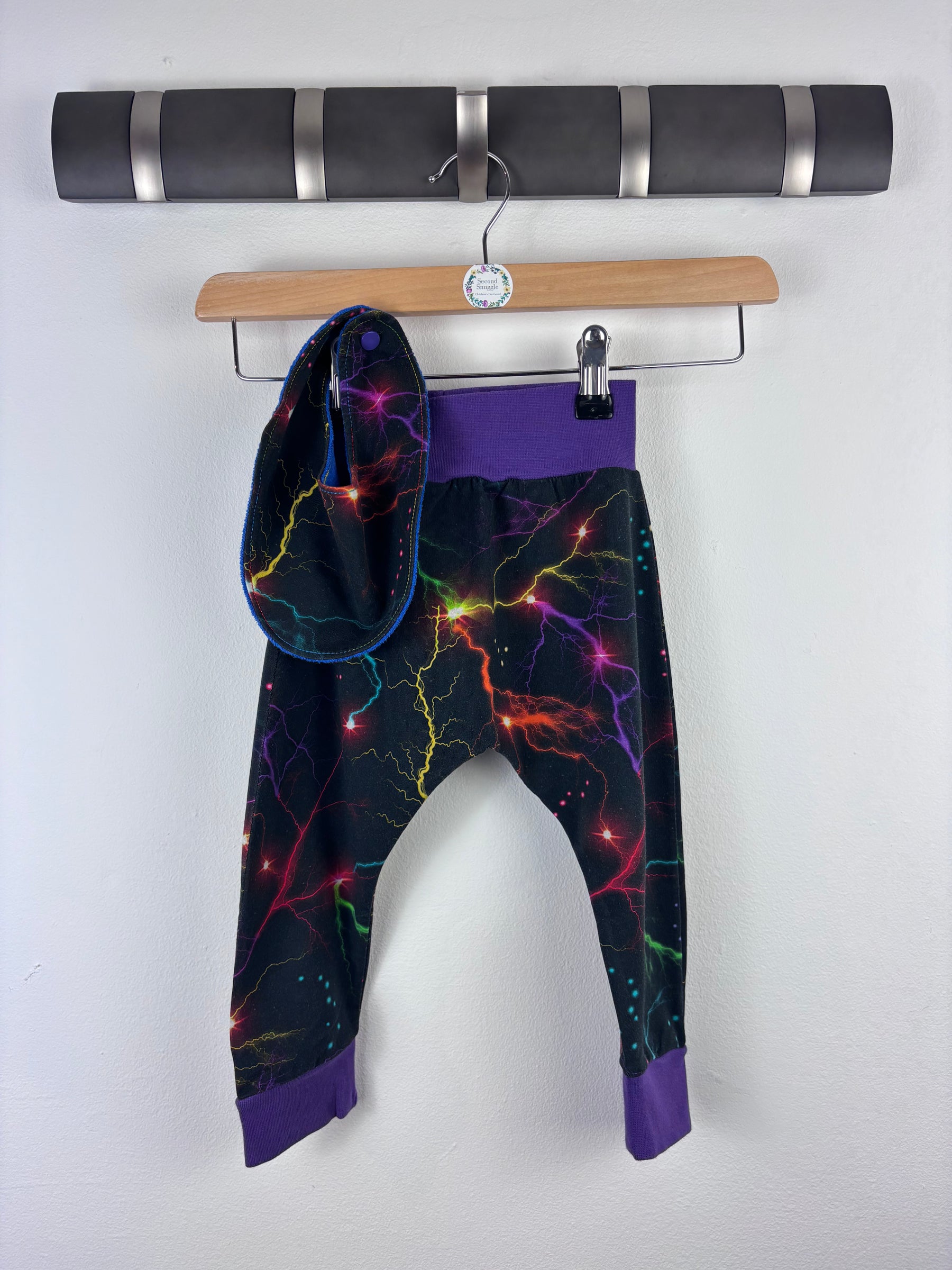 Handmade Lightning Leggings and Bib Set 6–12 Months