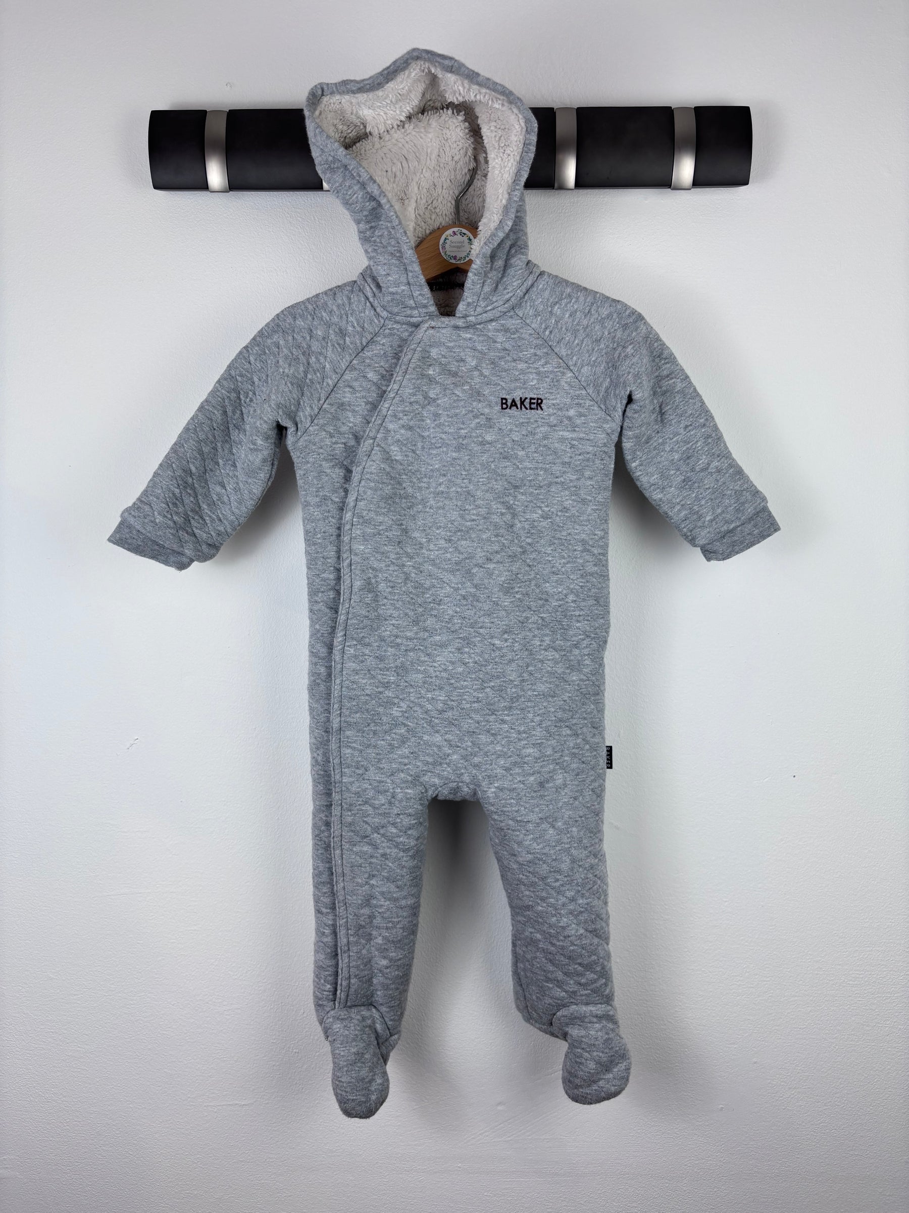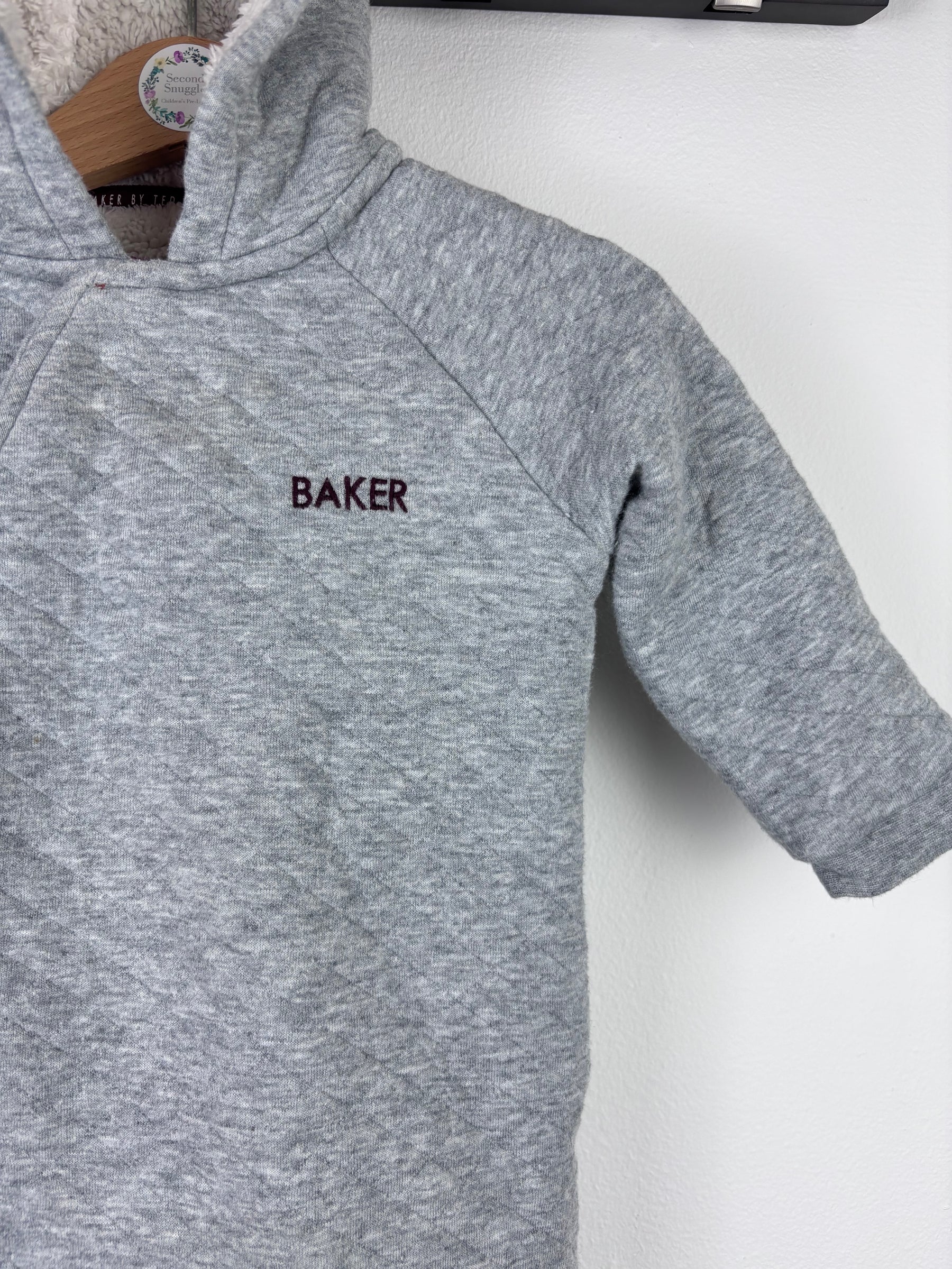 This Ted Baker pramsuit in size 9-12 months is in very good condition. It features a soft quilted design with hood and cosy fleece lining, ideal for chilly days. The pramsuit is both stylish and practical, with built-in feet for extra warmth. A high-quality preloved piece, it’s a second hand choice that keeps your baby comfortable while adding a touch of luxury to their wardrobe.