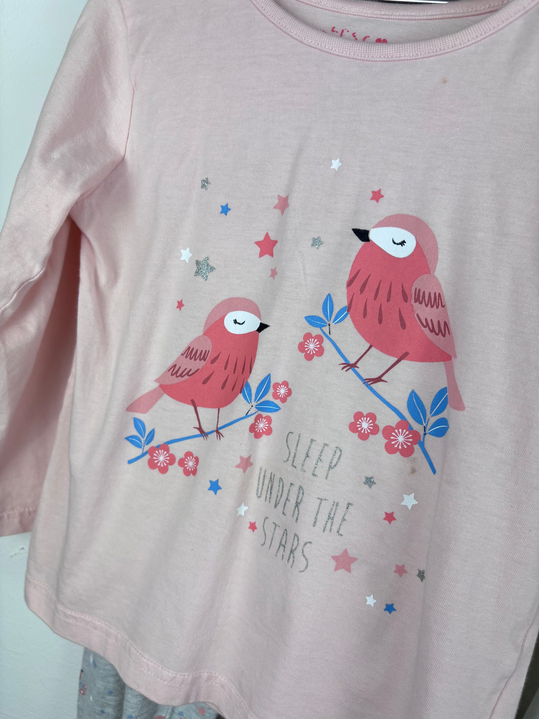 This Jeff & Co pyjama set is in good condition with a small mark noted. The top has a sweet bird print and the bottoms have cute matching details, with soft cotton that feels gentle for bedtime. The cuffed hems help the trousers stay in place for comfy sleeping. This set is ideal for cosy nights and relaxed mornings at home. This second hand pyjama set is still soft and perfect for regular wear. It is a preloved item with lots more bedtime use ahead.