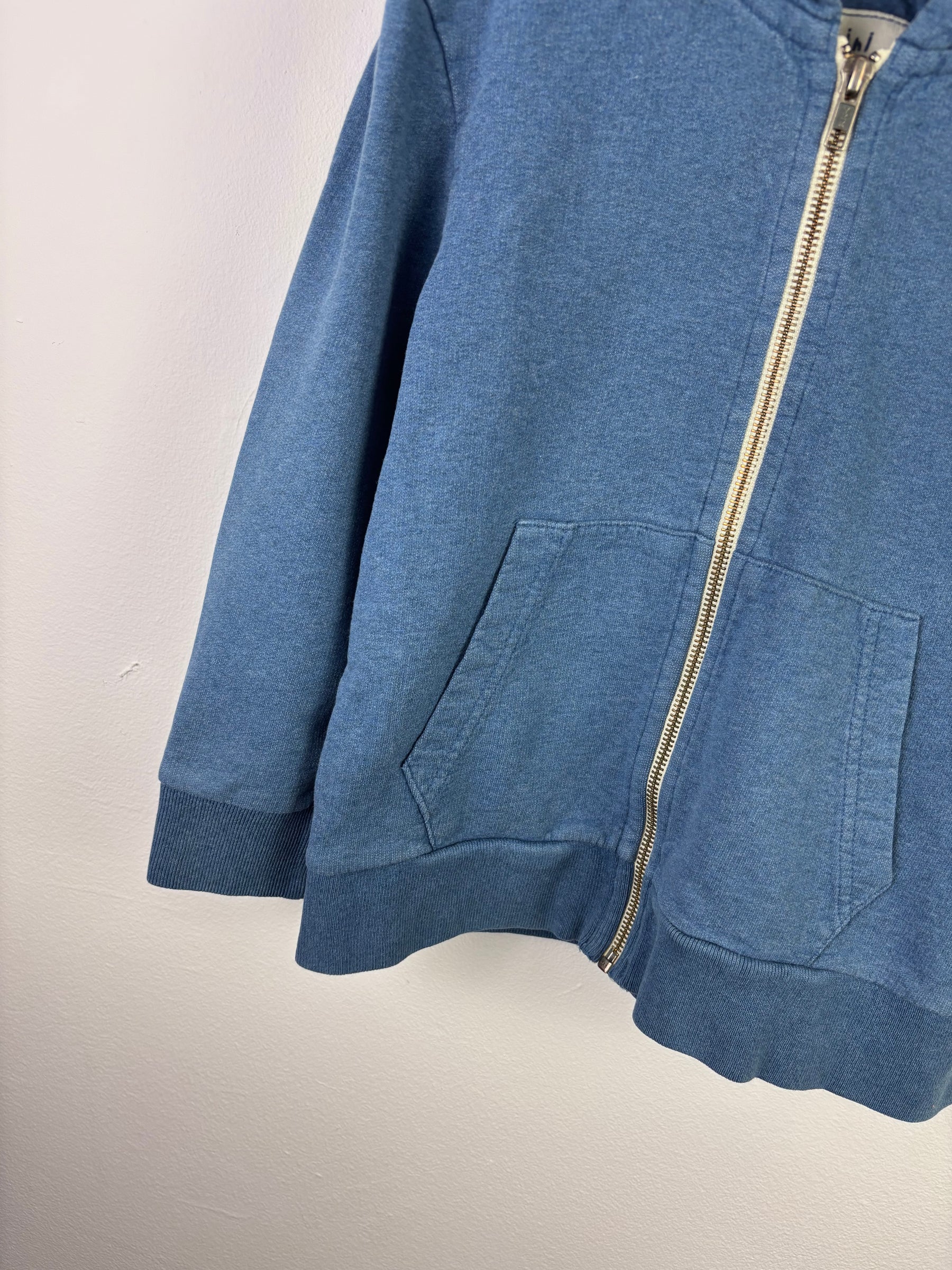 This Mini Boden zip hoodie comes in a soft mid-blue shade with a full front zip fastening and practical front pockets. Designed with a comfortable hood and ribbed cuffs and hem, it provides warmth while remaining easy to layer over everyday outfits. The simple, classic design makes it a versatile wardrobe staple for school, play or casual outings. In good preloved condition with signs of wear consistent with regular use, reflected in the price. A practical and timeless layering piece, ideal for building a comfortable and sustainable children’s wardrobe.