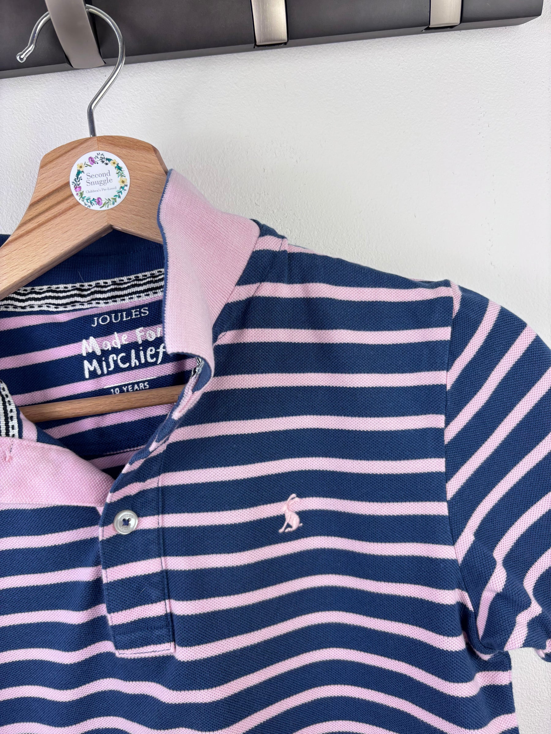A Joules navy polo shirt with pink stripes, perfect for casual days or dressing up a little smarter. It’s a classic style that works all year round and is in very good condition. Polo shirts are a practical staple for children, offering comfort while still looking neat. Joules is a trusted brand for long-lasting kids’ clothing, making this piece a great find. Buying preloved children’s clothes is a smart way to save money while making sustainable fashion choices that reduce waste.