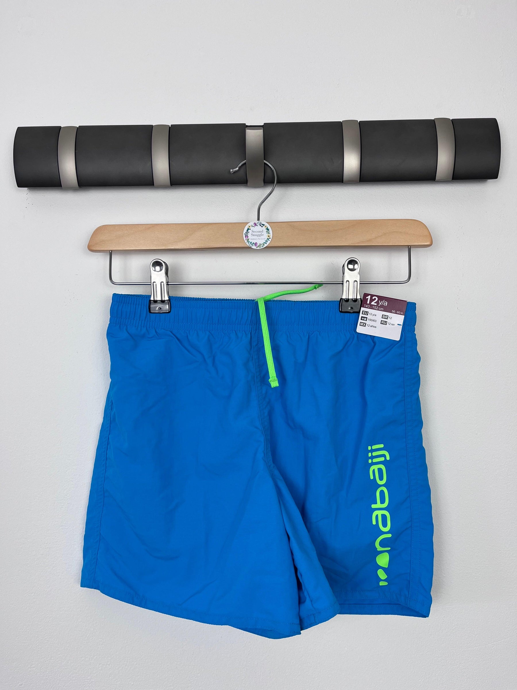 These Nabaiji boys’ swim shorts in bright blue are brand new with tags. Designed with a lime green drawstring and logo detail, they are lightweight and comfortable for swimming or beach days. Perfect for active kids, they have a quick-dry fabric that makes them practical for holidays or swimming lessons. These shorts are unworn, offering great quality at a lower price than new. A fantastic second hand children’s clothing find that gives value and style without the fast fashion cost. These preloved shorts are ready for plenty of swimming adventures.