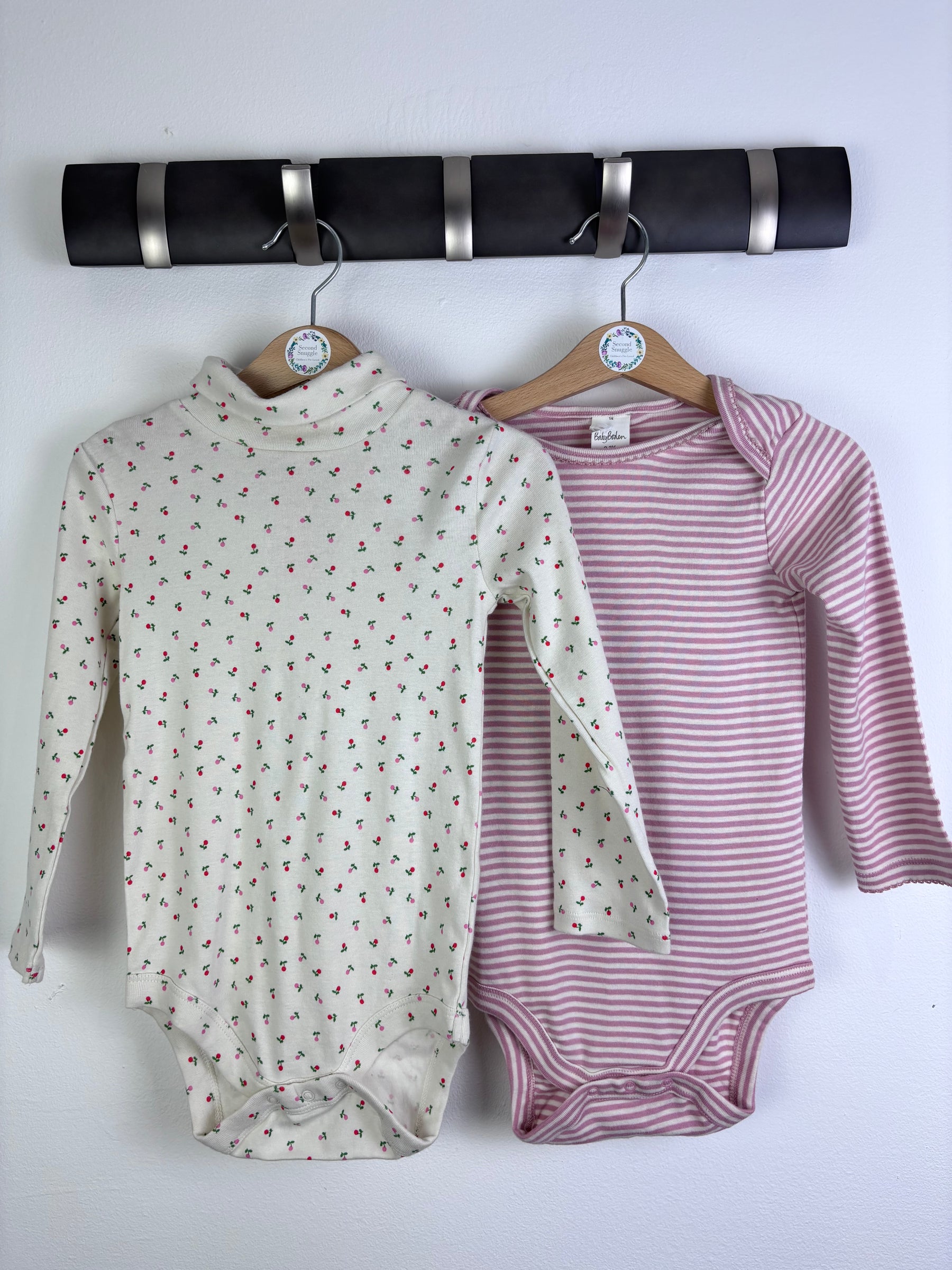 This Baby Boden bodysuit set includes two long sleeve vests with a pink stripe design and a cream base with small cherry prints. Made from soft cotton, they are comfortable for busy children and great for layering or everyday outfits. Popper fastenings allow for easy dressing. These bodysuits are new without tags. Please note one bodysuit has a broken popper at the top as shown in the photo. Still a useful set for children’s clothing, ideal for kids fashion and families shopping second-hand and preloved styles.