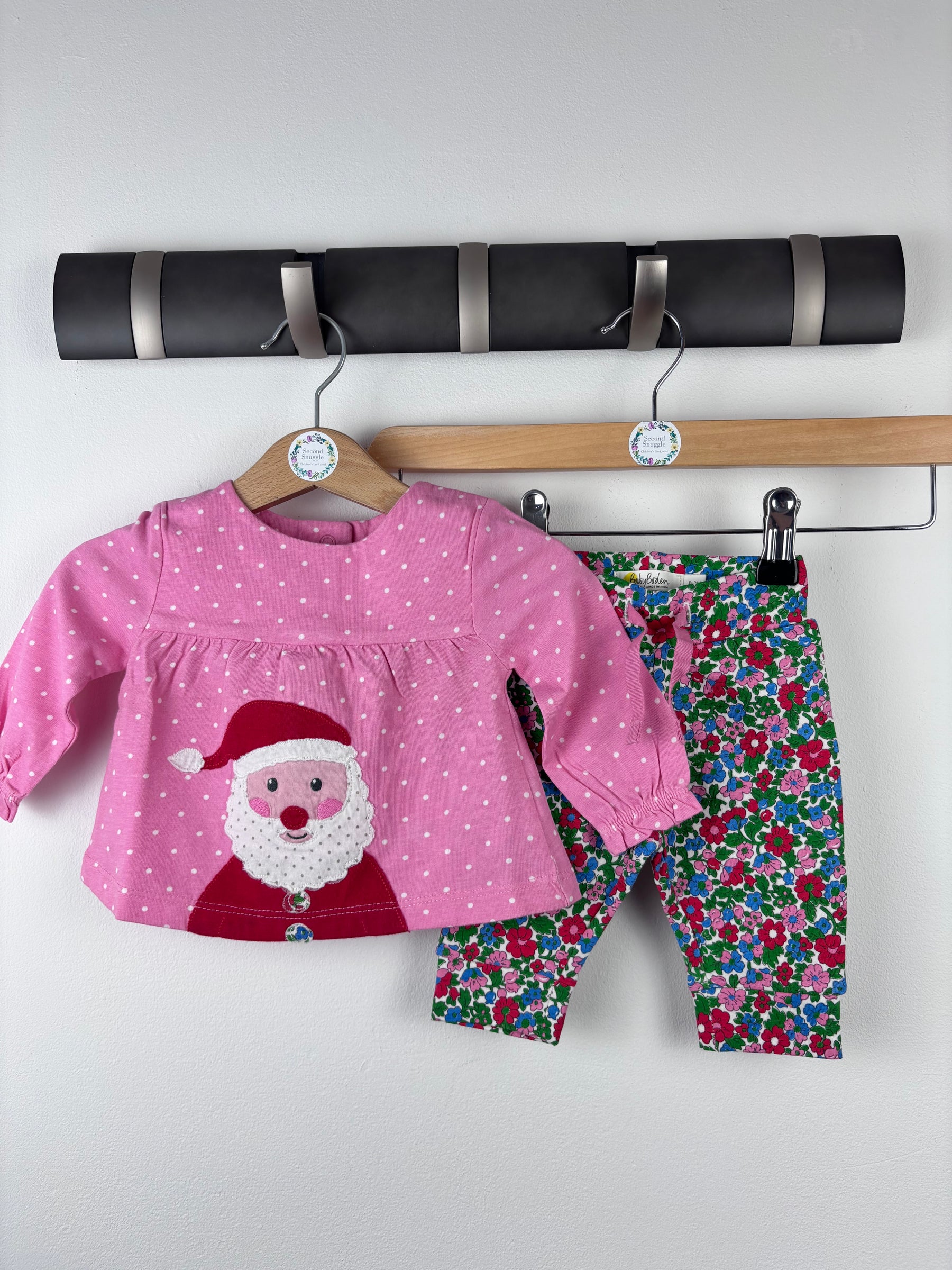 Baby Boden Pink Santa Top and Floral Leggings Set 0–3 Months