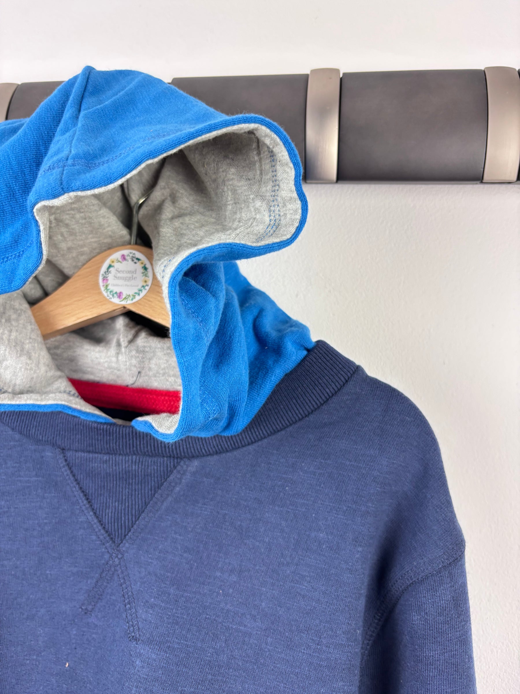 This navy hoodie from ex Boden has a soft brushed lining and a cosy fit that kids will love. Featuring bold blue star patches along the sleeves and a contrast blue hood, it’s both stylish and practical. Perfect for layering on cooler days or relaxing at home, it’s new without tags and in pristine condition. This preloved hoodie is a lovely second hand find that adds quality and comfort to everyday wear, perfect for parents who value well-made clothing.