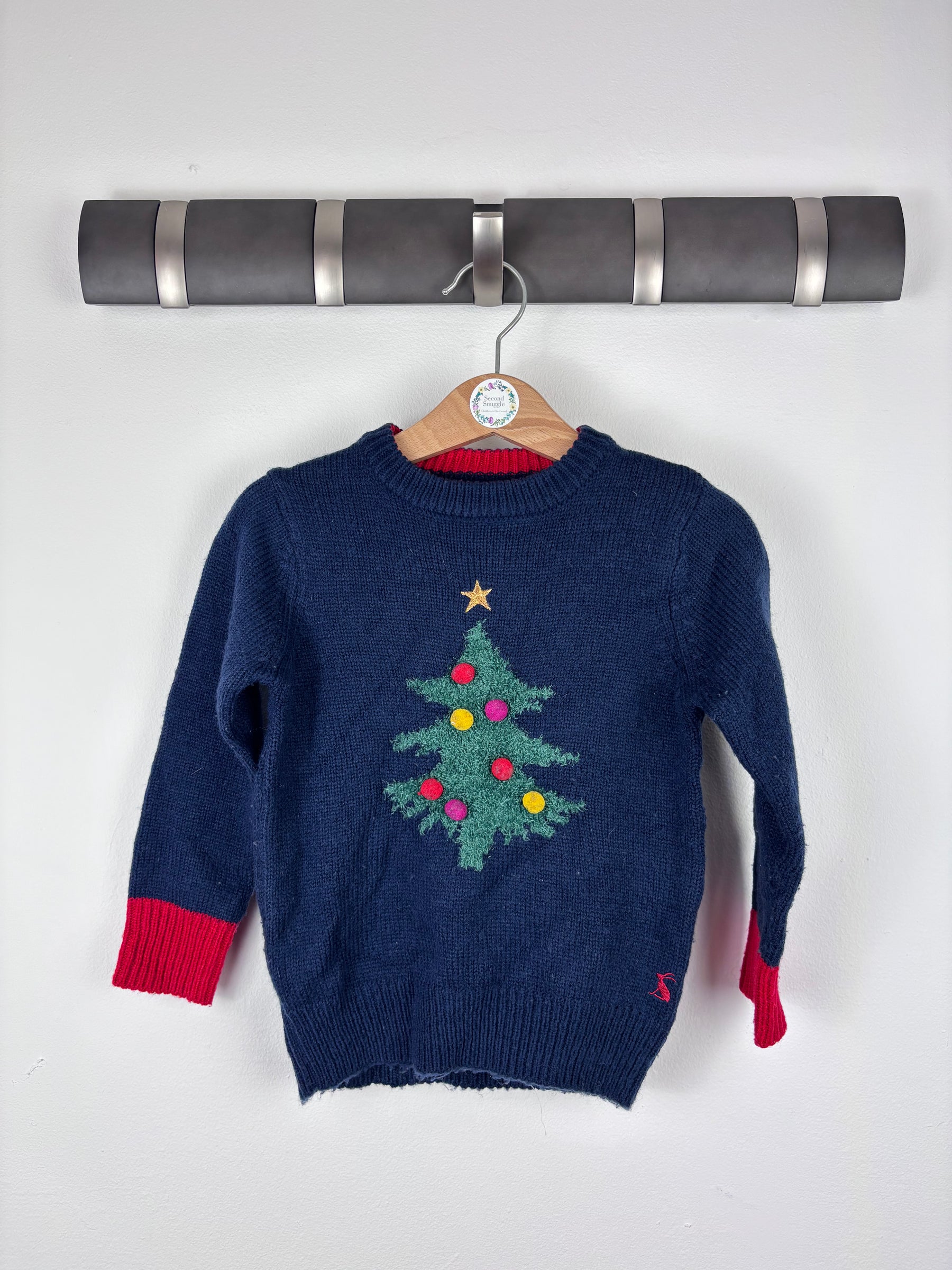 This Joules Christmas jumper in size 7-8 years is in very good condition and perfect for festive fun. The navy knit features a decorated green Christmas tree with colourful baubles and a gold star on top, finished with bold red cuffs for extra cheer. Made from a cosy knit, it’s great for school Christmas jumper days, family photos or holiday parties. A lovely preloved piece of children’s clothing that combines style with comfort. Choosing second hand fashion helps save money and gives kids something special to wear during the festive season.