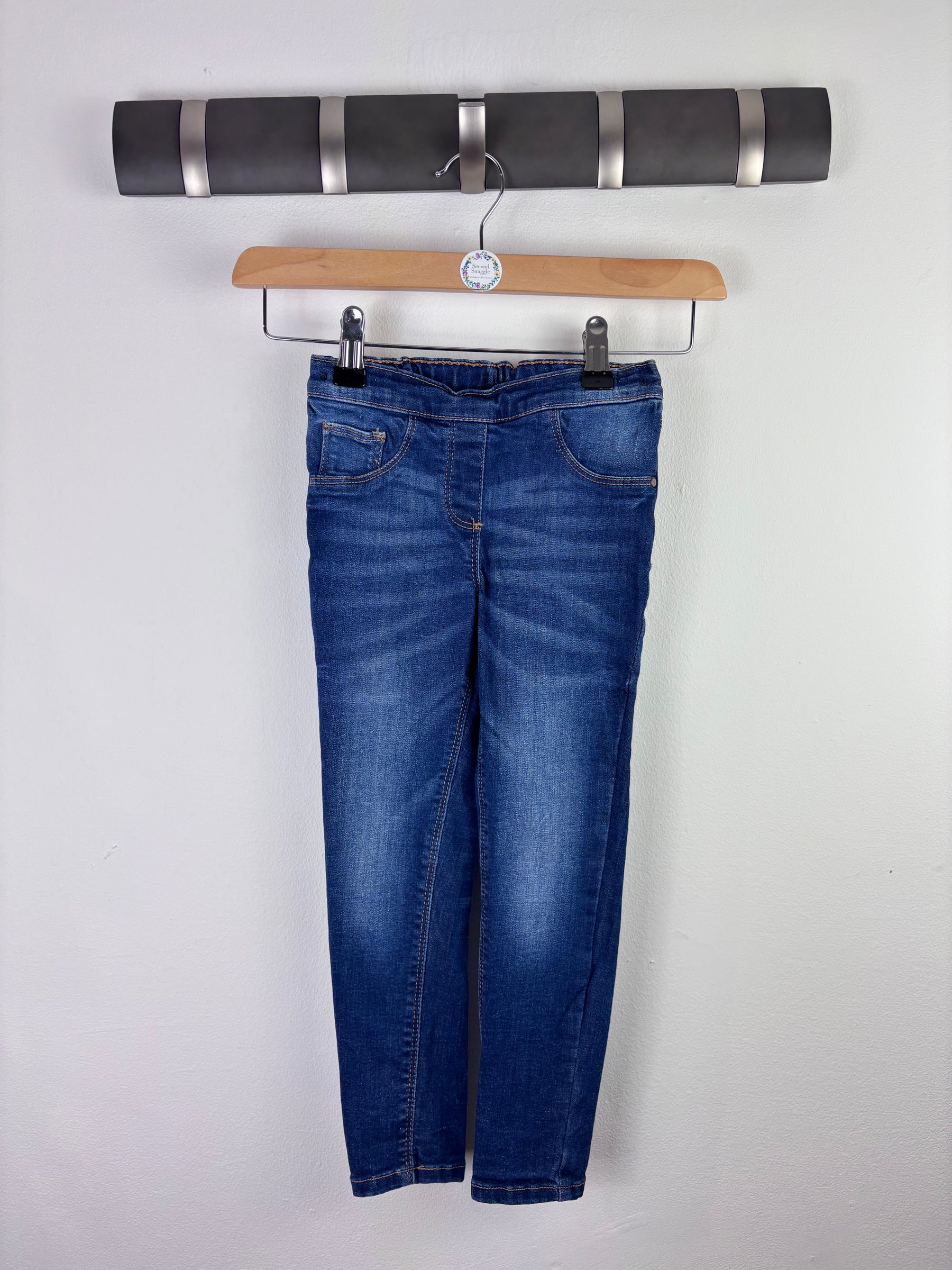 These Next jeans in size 4-5 years are in very good condition. Made from soft, stretchy denim for comfort and movement, they feature an easy pull-on elasticated waist and a classic blue wash. Perfect for everyday wear, they look great with jumpers or tees and are practical for playtime or outings. This preloved pair is a lovely second hand find that offers quality and style. A versatile wardrobe staple that’s both durable and comfortable for growing children.