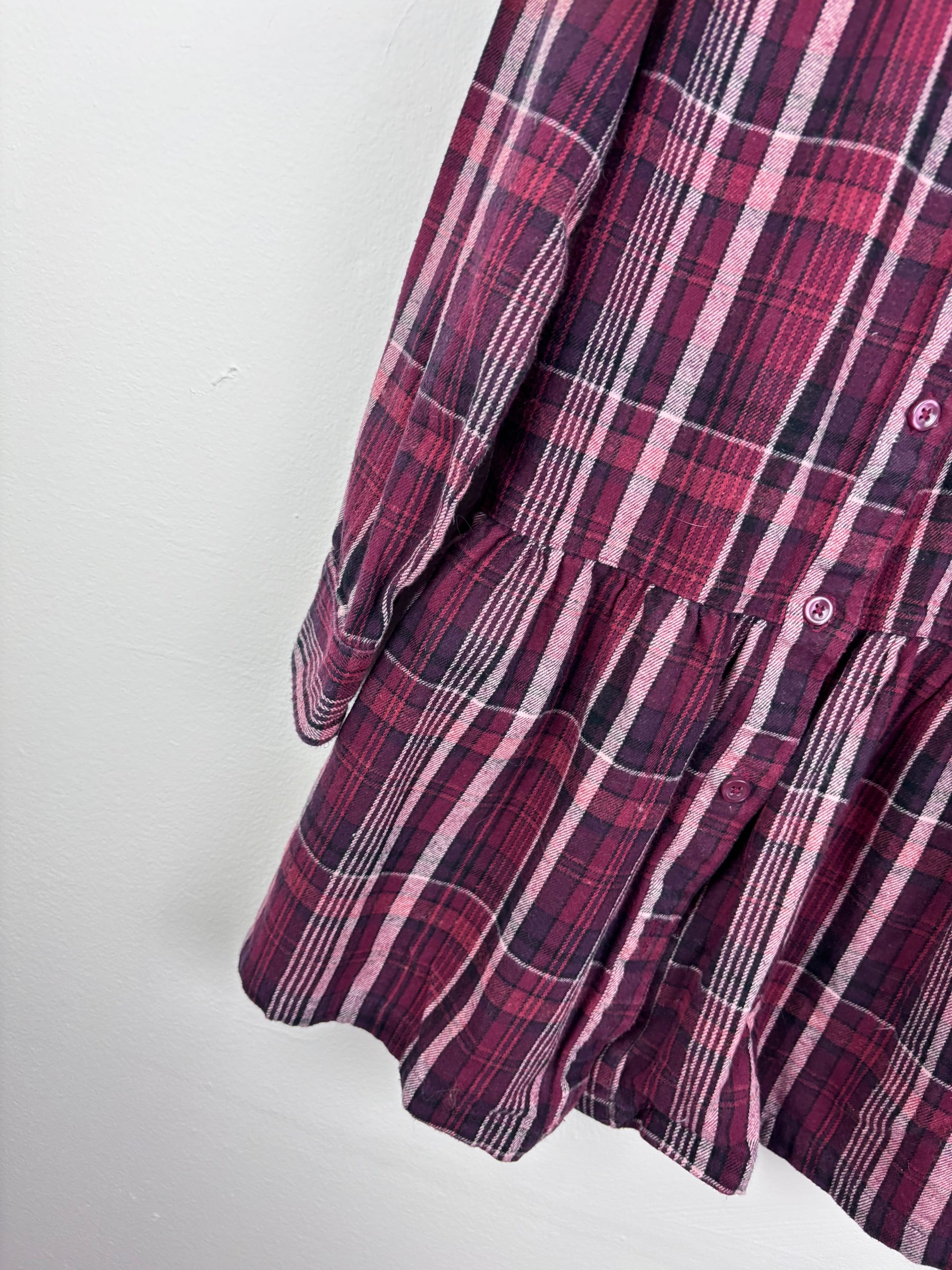 This Threadgirls dress is in very good condition and features a classic burgundy check pattern with long sleeves and a button front. It has a soft collar detail and a gently gathered skirt, making it comfortable while still feeling special. The fabric feels lightweight and easy to move in, ideal for everyday wear or layering in cooler months. This second hand dress has been gently worn and still looks lovely. It is a preloved piece that works well with tights and boots and is perfect for autumn and winter wardrobes.